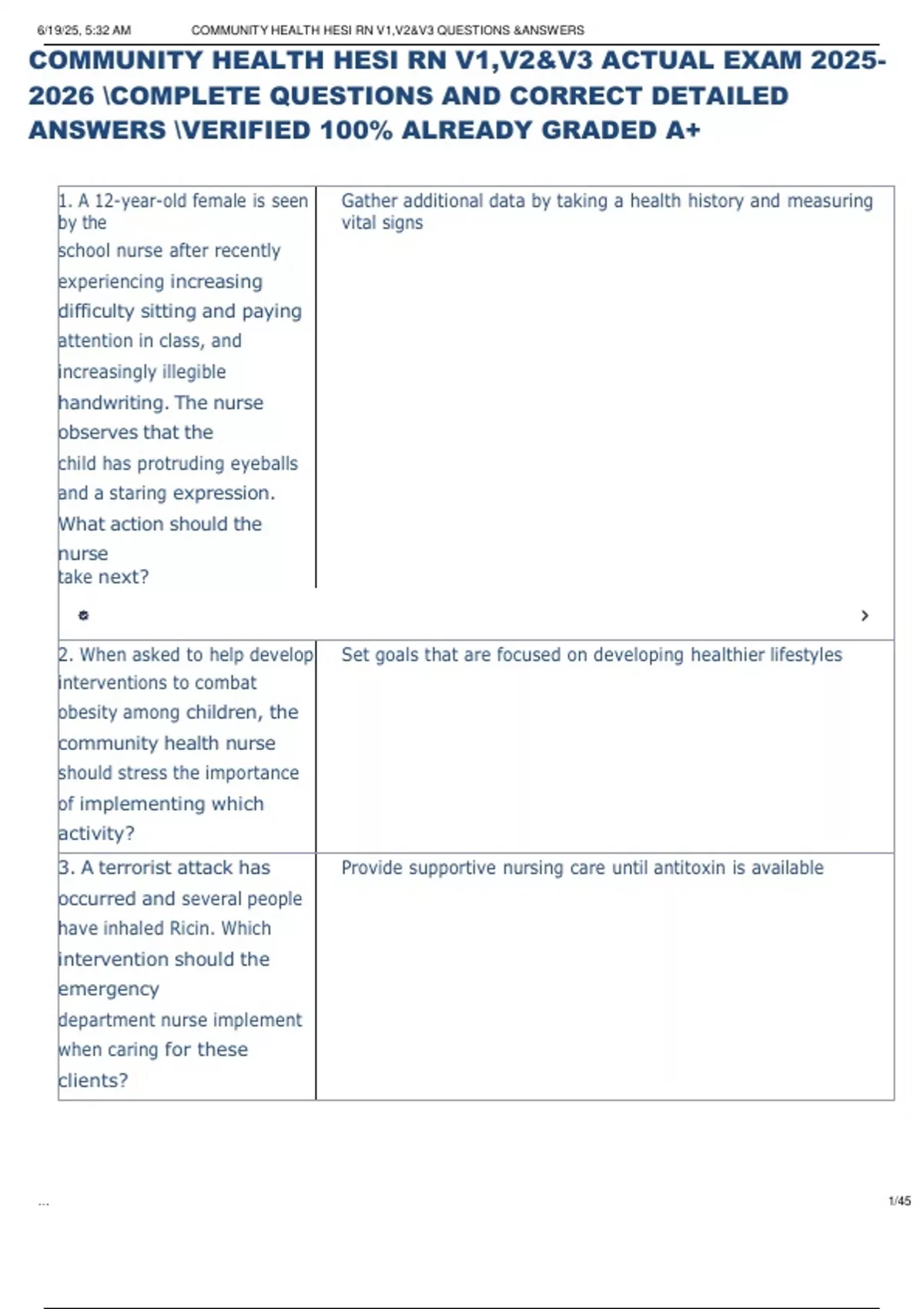 , 6/19/25, 5:32 AM COMMUNITY HEALTH HESI RN V1,V2&V3 QUESTIONS &ANSWERS