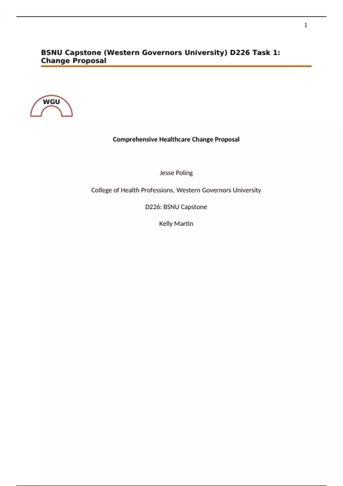 BSNU Capstone (Western Governors University) D226 Task 1: Change Proposal