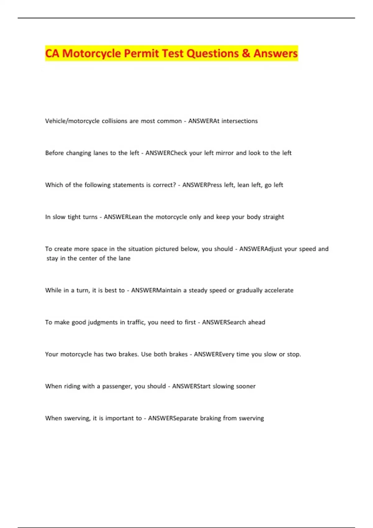CA Motorcycle Permit Test Questions & Answers