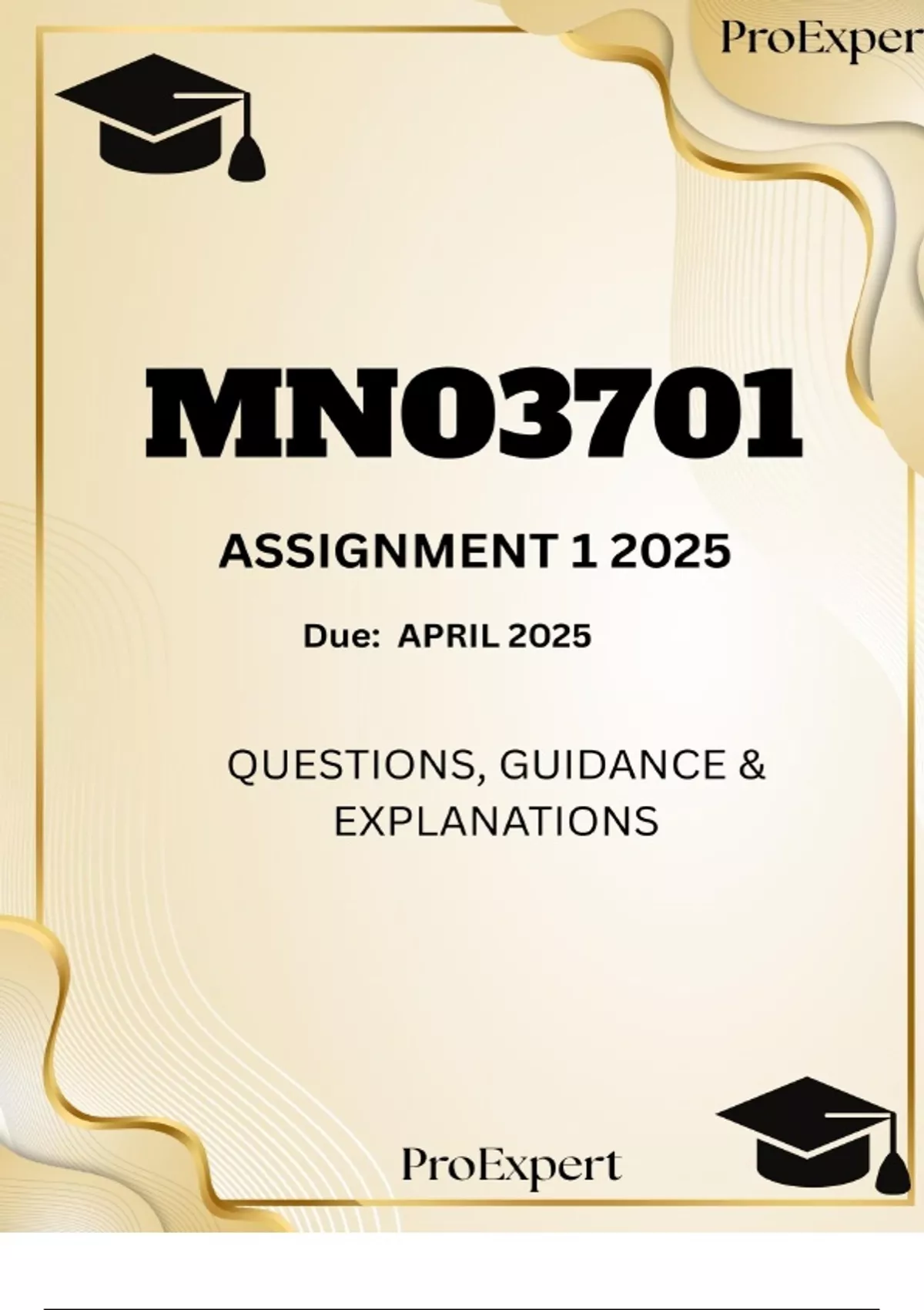 Are you struggling to complete your MNO3701 assignment? Look no further! This comprehensive guide is specially designed to help you excel in your course. Our 2025 edition provides a detailed and structured approach to tackling your assignment, ensuring you understand the concepts and produce high-quality work. This guide is packed with: In-depth explanations of key topic, backed by relevant examples and case studies Step-by-step guidance on how to approach and answer questions, including sample solutions Essential tips and tricks to help you avoid common mistakes and pitfalls A clear and concise writing style, making it easy to understand and follow With this guide, you'll be confident in your ability to complete your assignment to the best of your abilities, and achieve the grades you deserve. Don't risk your academic success; get your copy today!