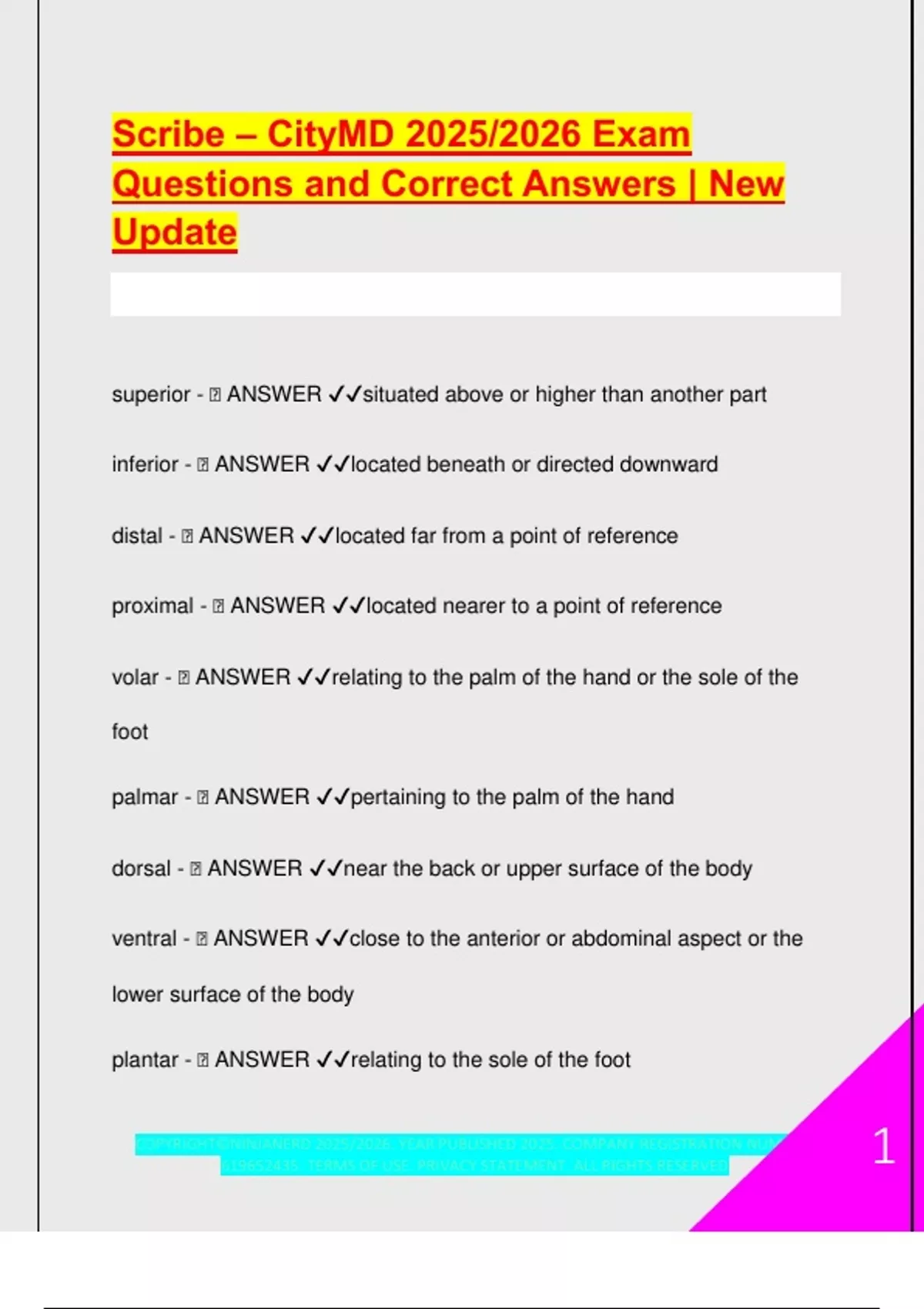 inferior - 🧠 ANSWER ✔✔located beneath or directed downward