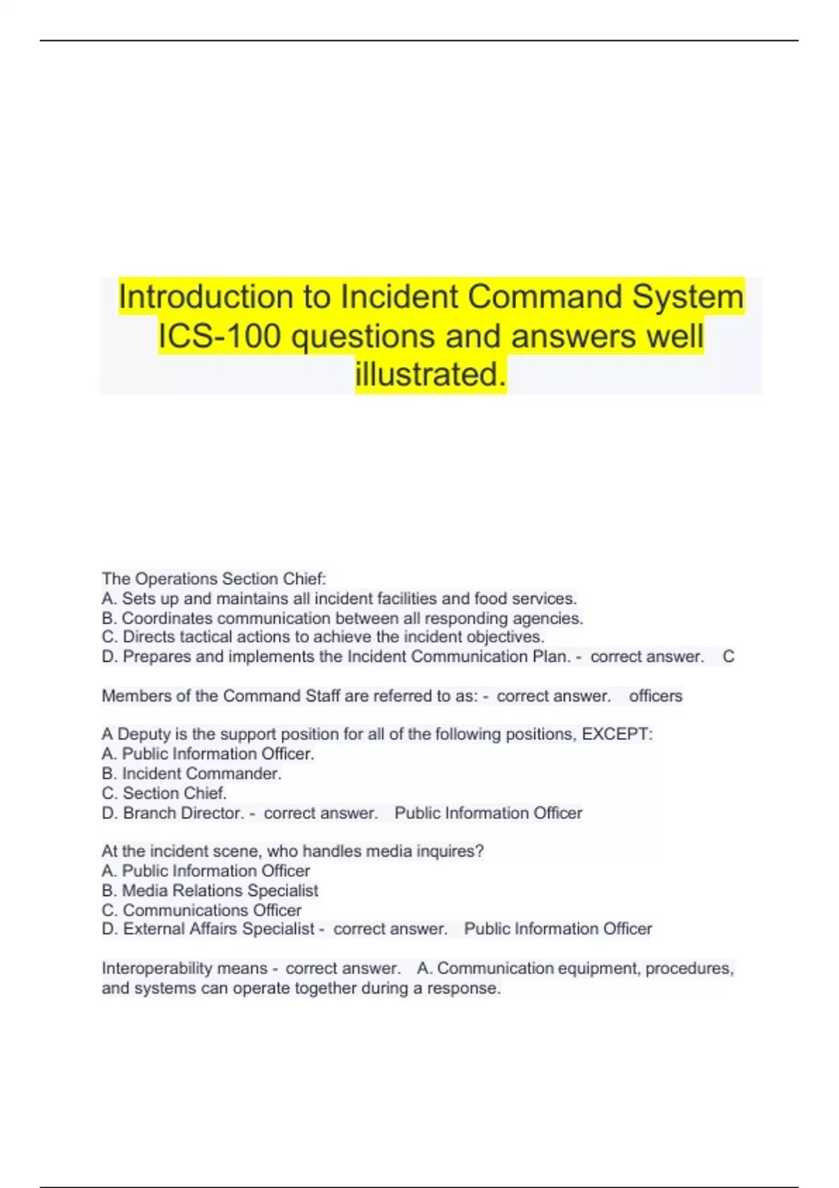 Introduction to Incident Command System ICS-100 questions and answers well illustrated.