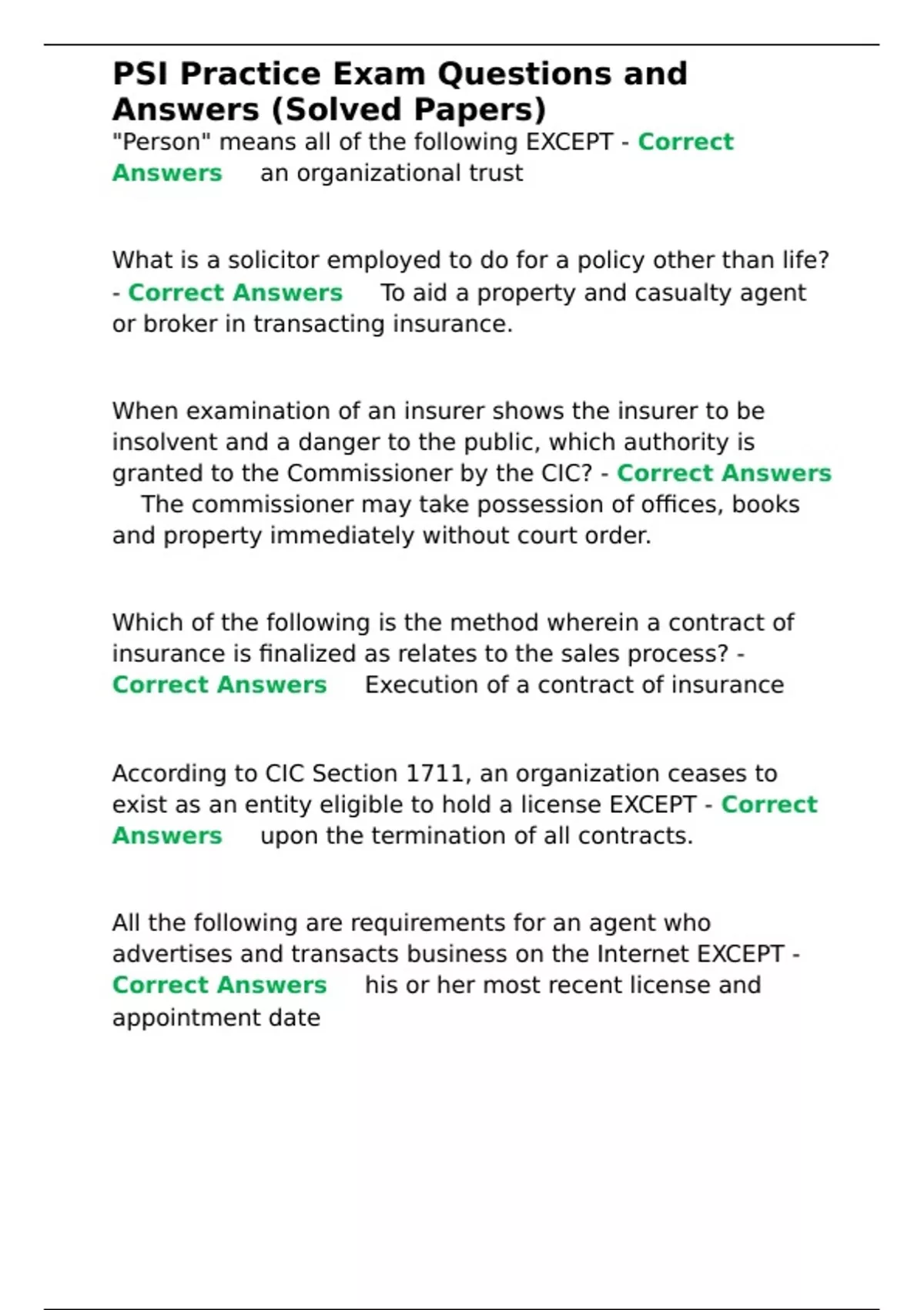 PSI Practice Exam Questions and Answers (Solved Papers).