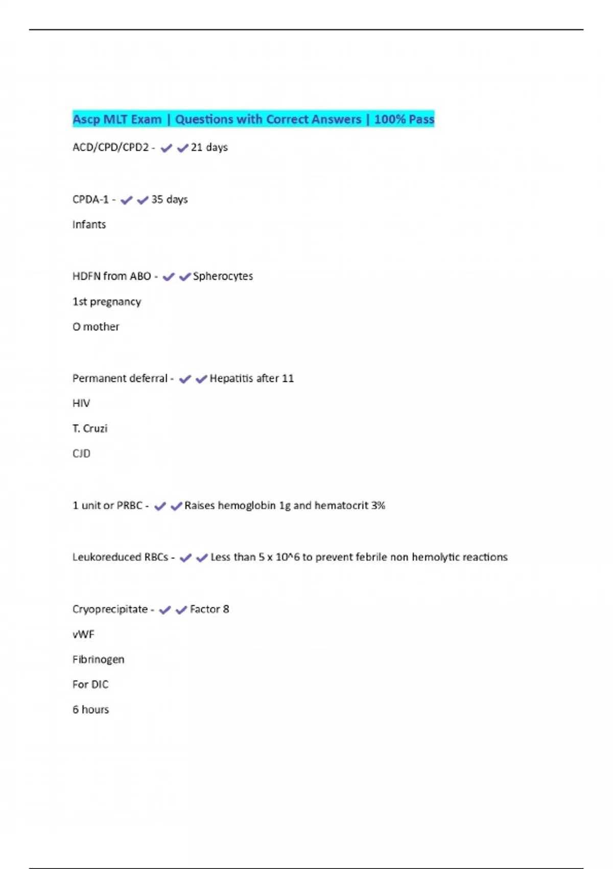 Ascp MLT Exam | Questions with Correct Answers | 100% Pass