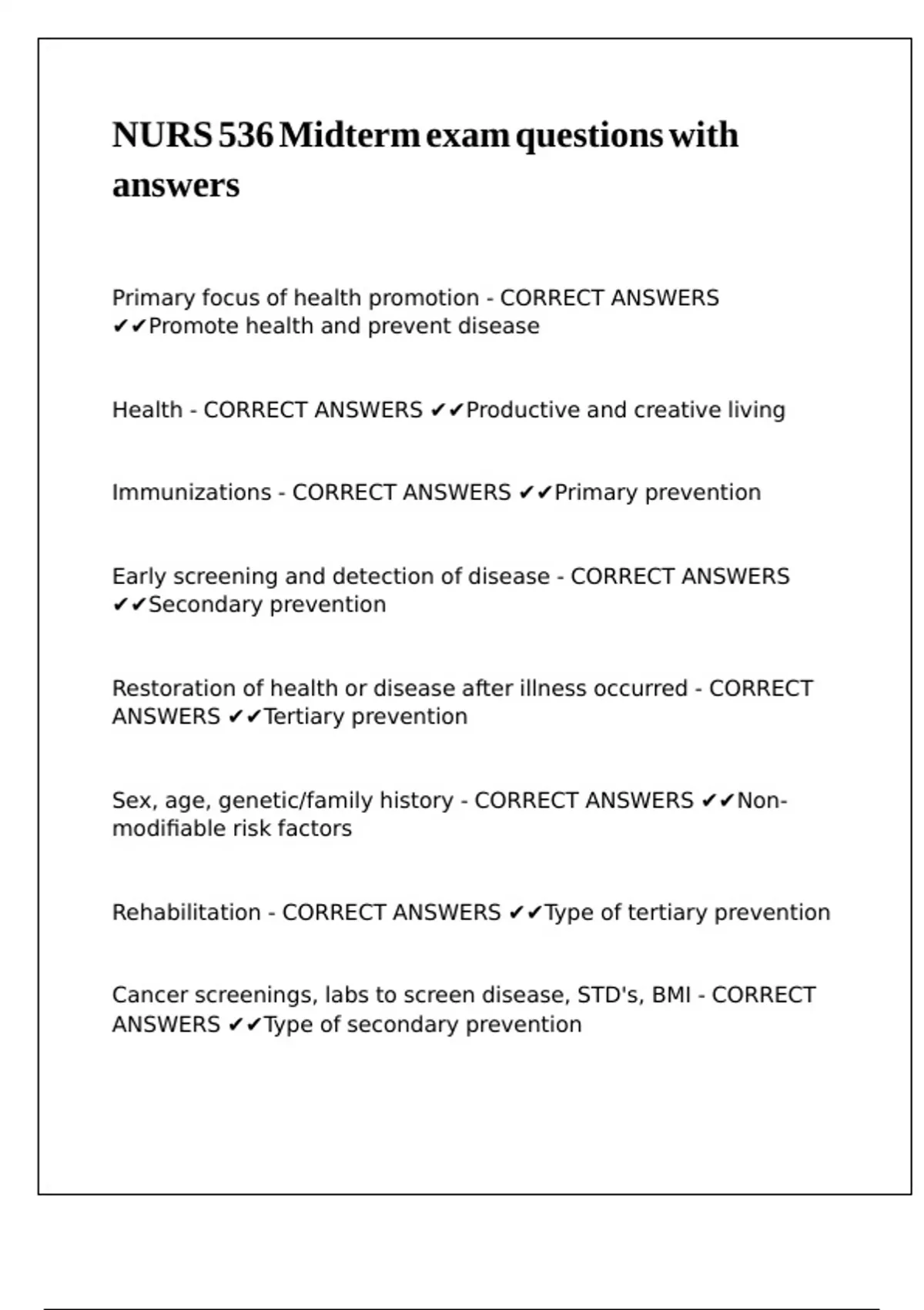 ANSWERS ✔✔Type of secondary prevention