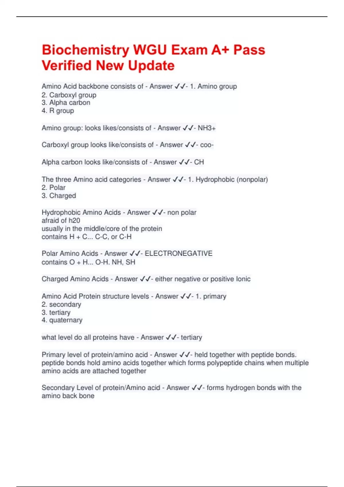 Biochemistry WGU Exam A+ Pass Verified New Update
