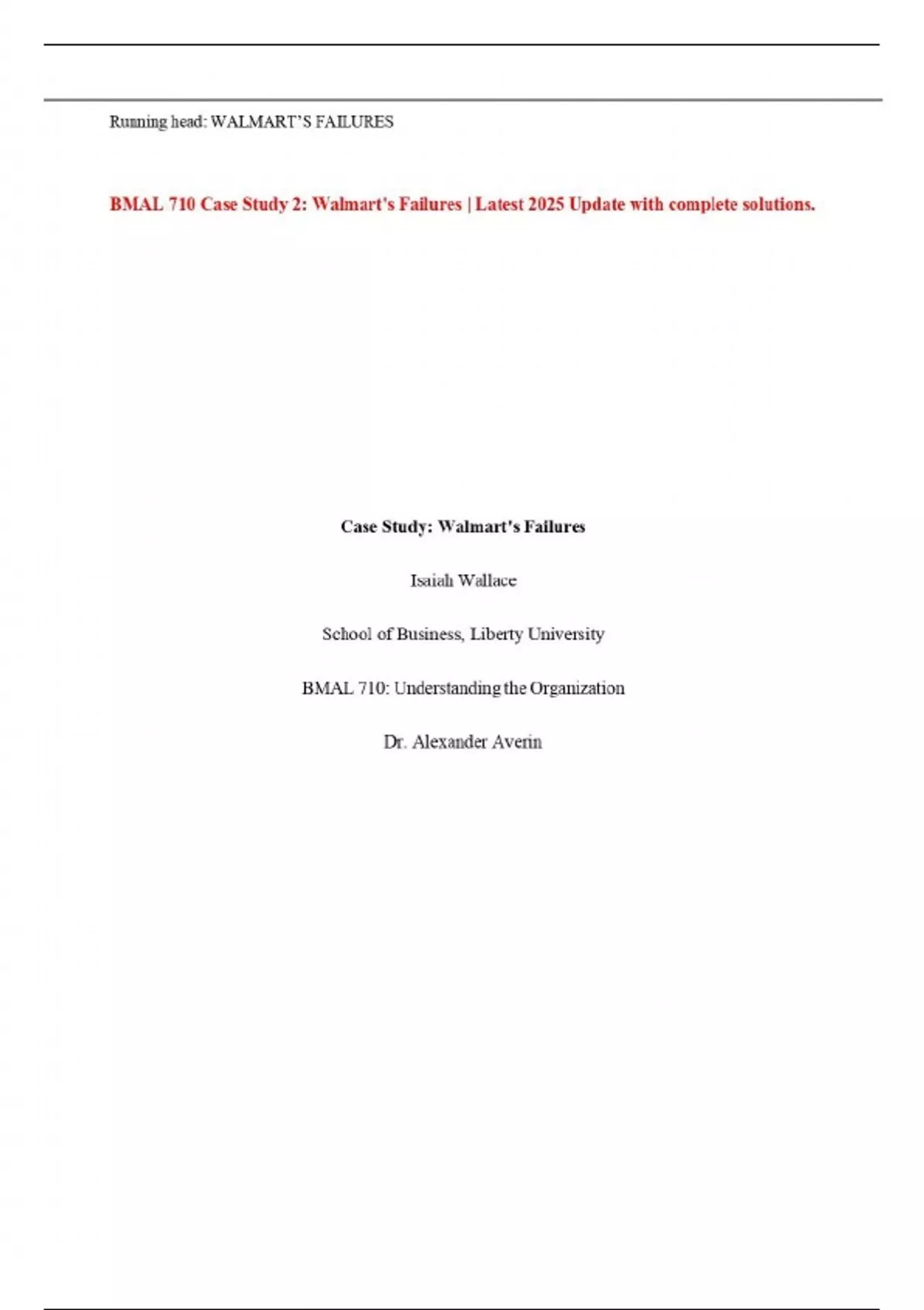 BMAL 710 Case Study 2: Walmart's Failures | Latest 2025 Update with complete solutions.