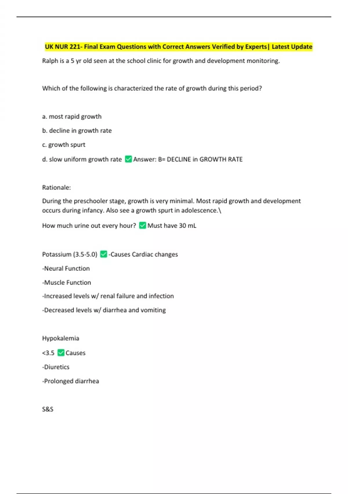 UK NUR 221- Final Exam Questions with Correct Answers Verified by Experts| Latest Update