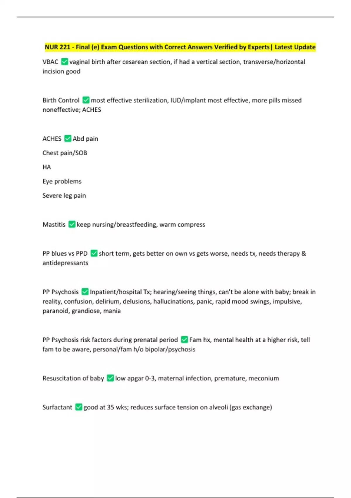 NUR 221 - Final (e) Exam Questions with Correct Answers Verified by Experts| Latest Update