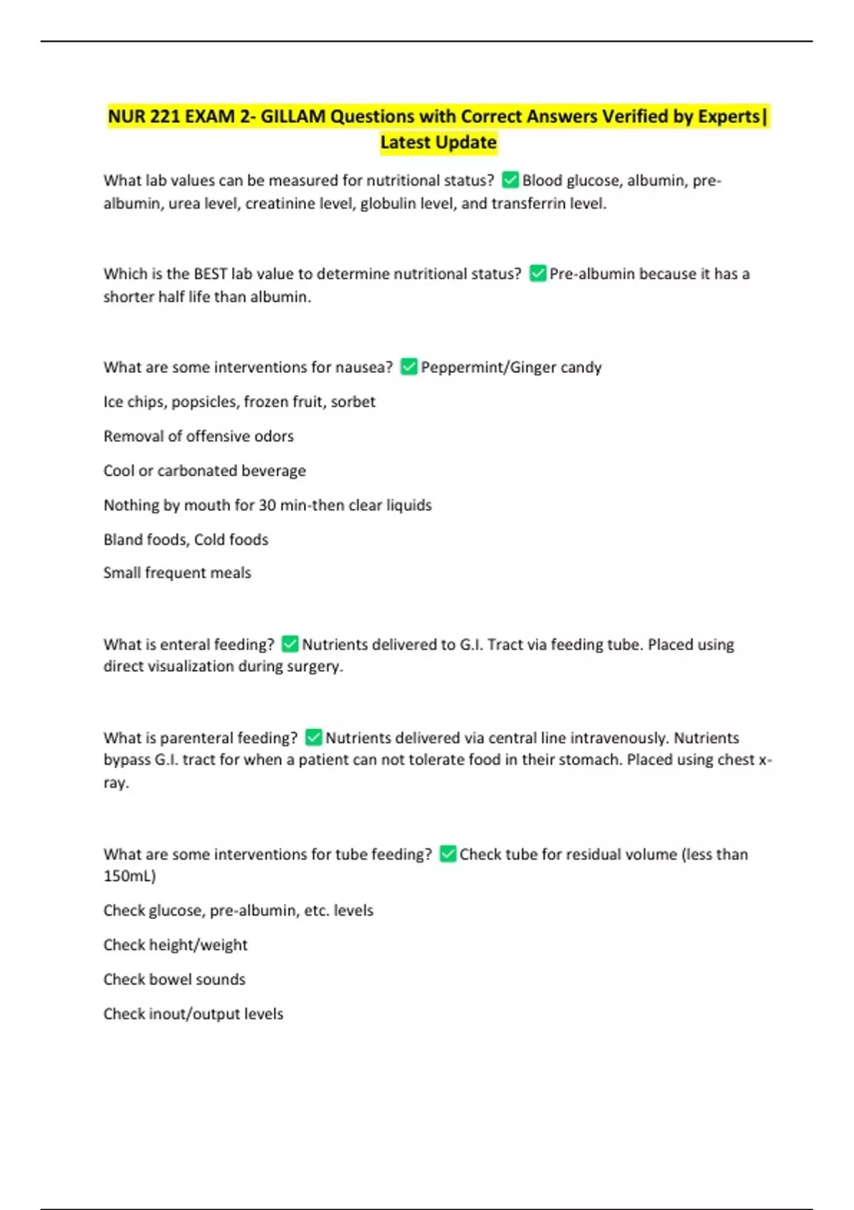 NUR 221 EXAM 2- GILLAM Questions with Correct Answers Verified by Experts| Latest Update