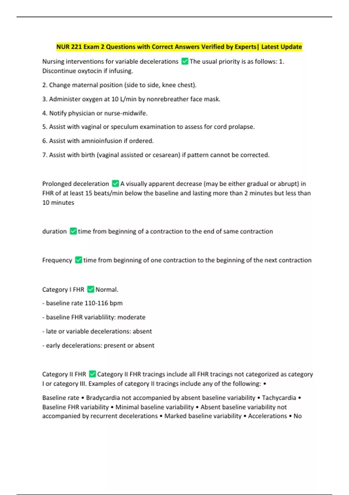 NUR 221 Exam 2 Questions with Correct Answers Verified by Experts| Latest Update