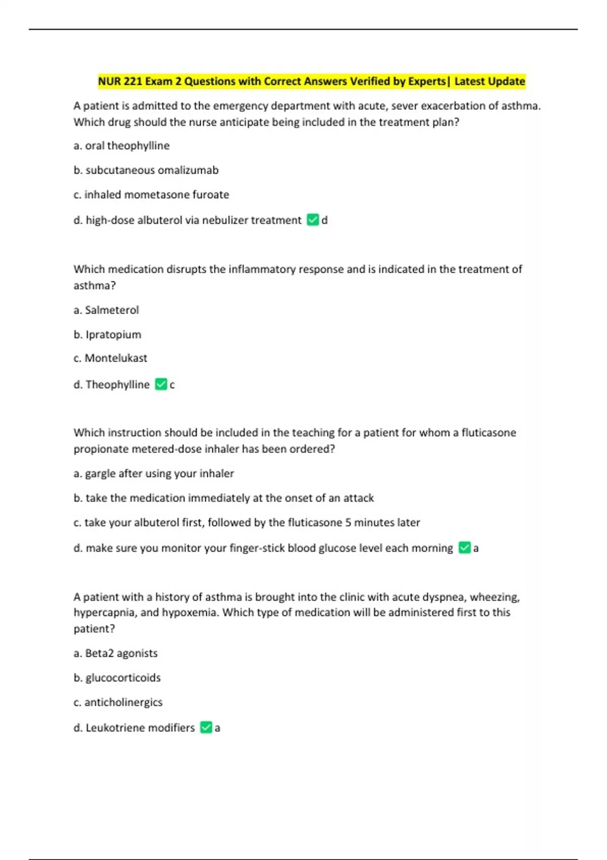 NUR 221 Exam 2 Questions with Correct Answers Verified by Experts| Latest Update