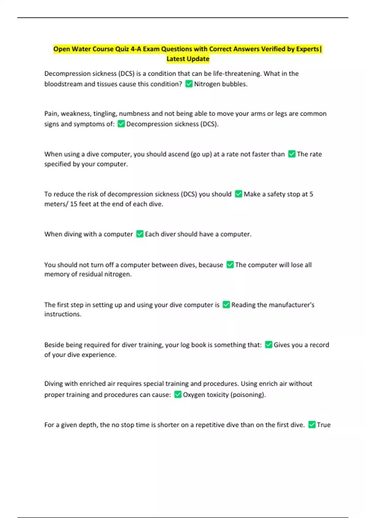 Open Water Course Quiz 4-A Exam Questions with Correct Answers Verified by Experts| Latest Update