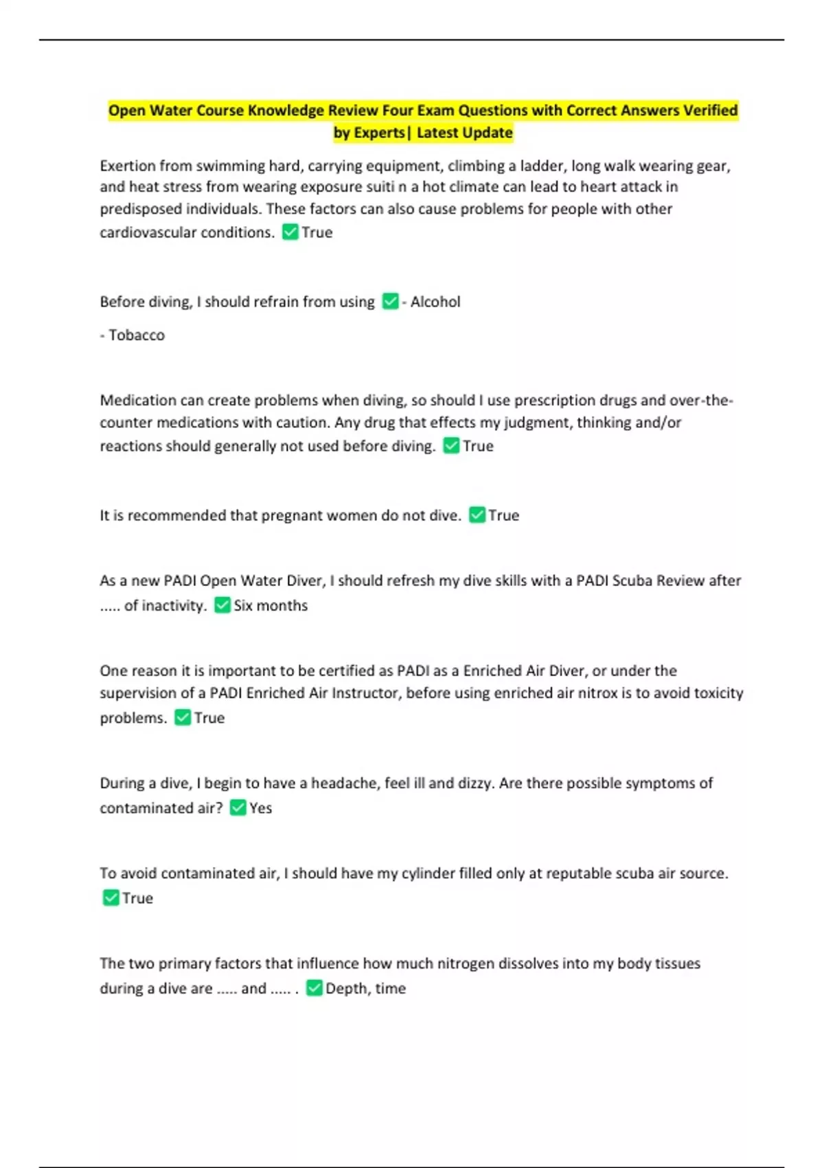 Open Water Course Knowledge Review Four Exam Questions with Correct Answers Verified by Experts| Latest Update