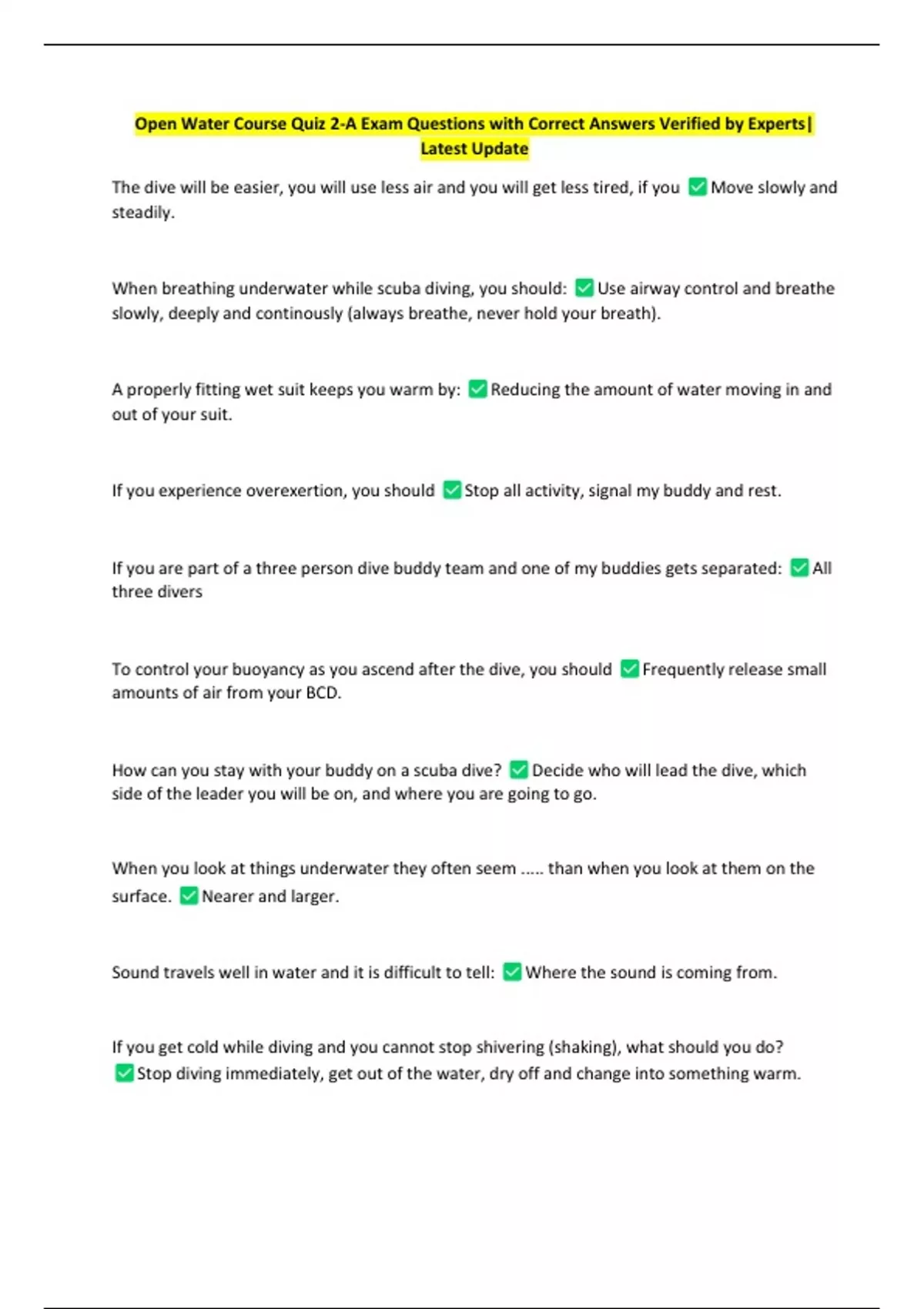 To control your buoyancy as you ascend after the dive, you should Frequently release small