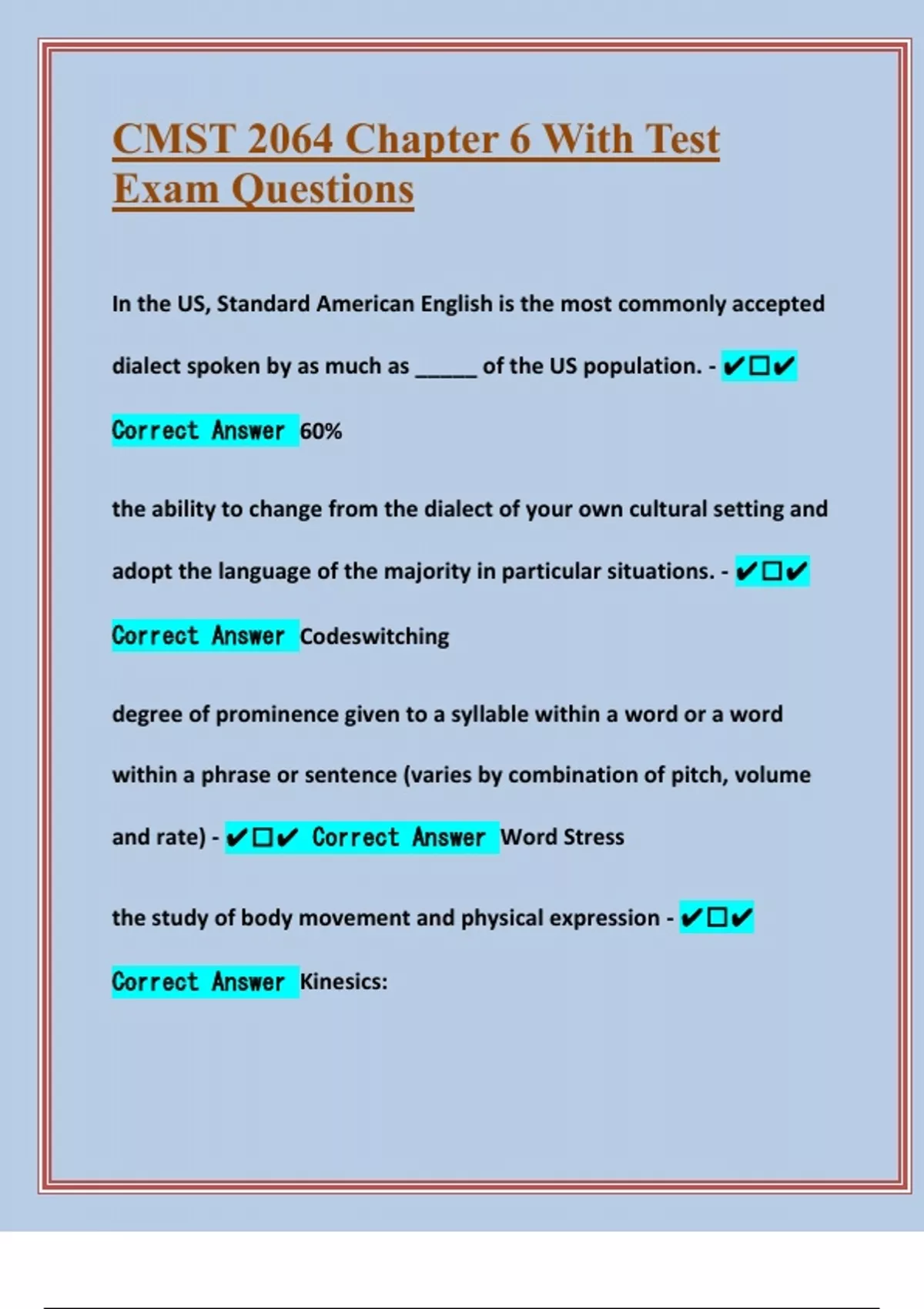CMST 2064 Chapter 6 With Test Exam Questions With Answers