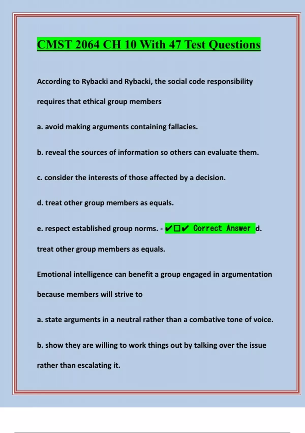 e. respect established group norms. - ✔️✔ Correct Answer d.