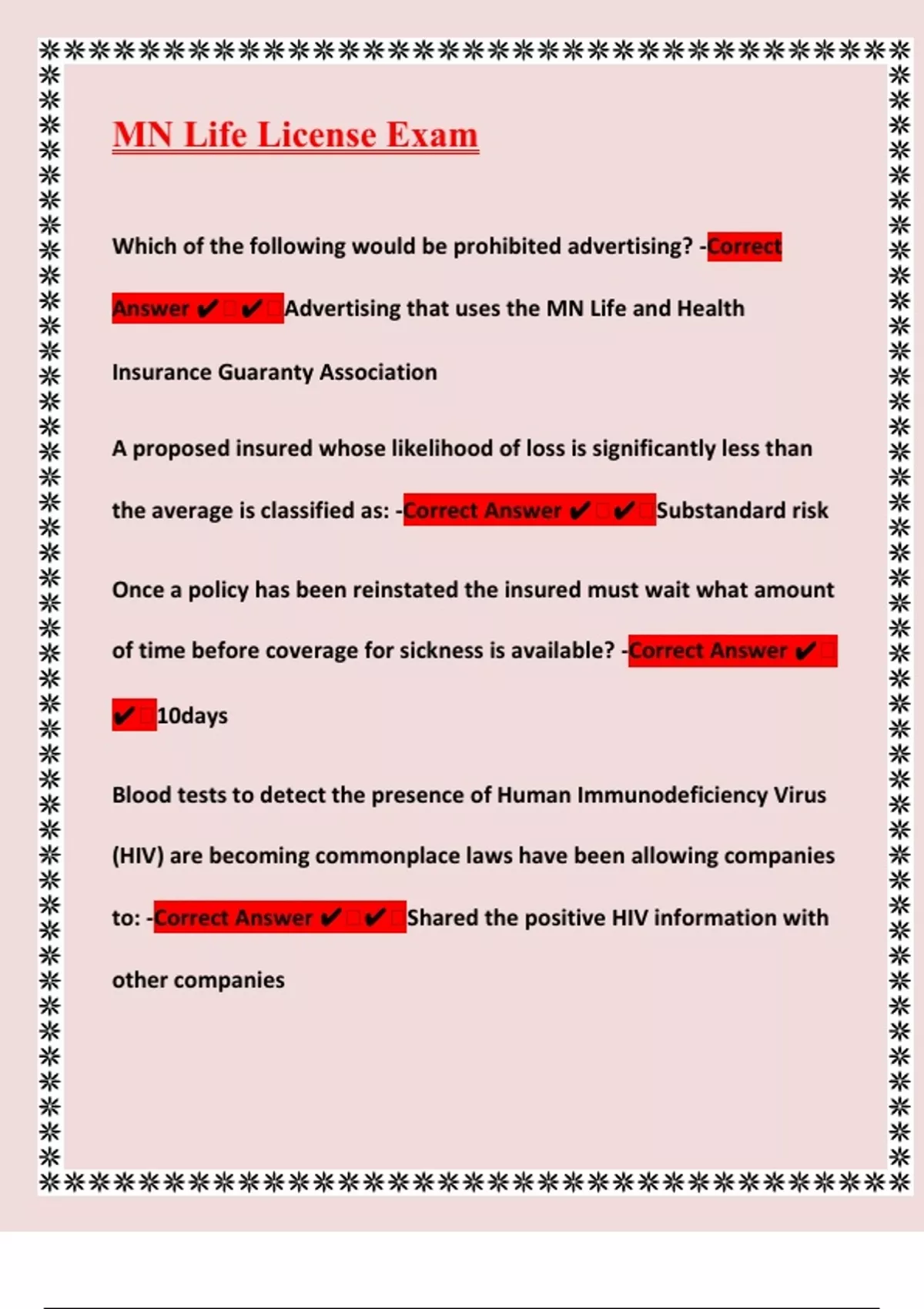 Answer ✔ ✔ Advertising that uses the MN Life and Health