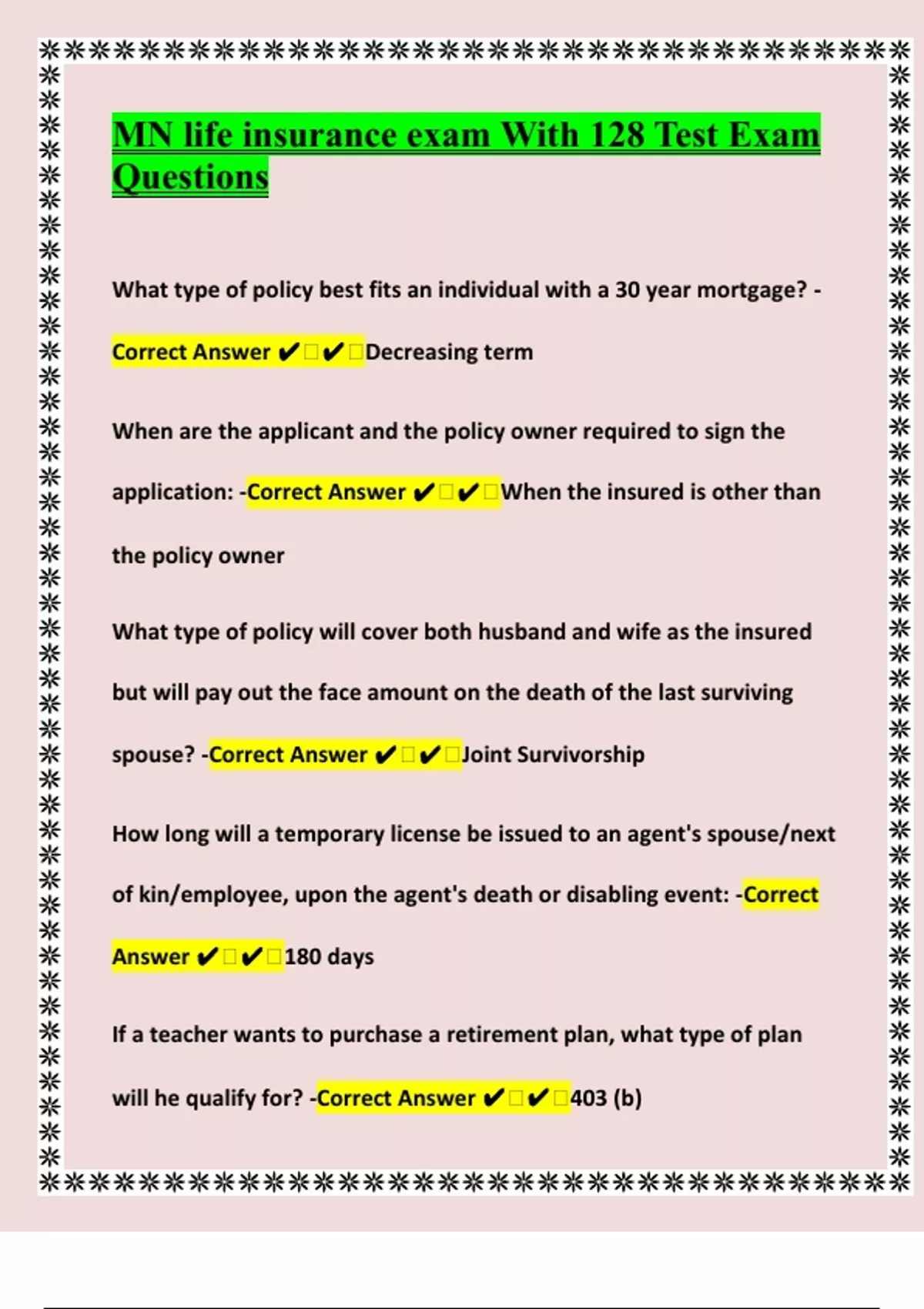 spouse? -Correct Answer ✔ ✔ Joint Survivorship