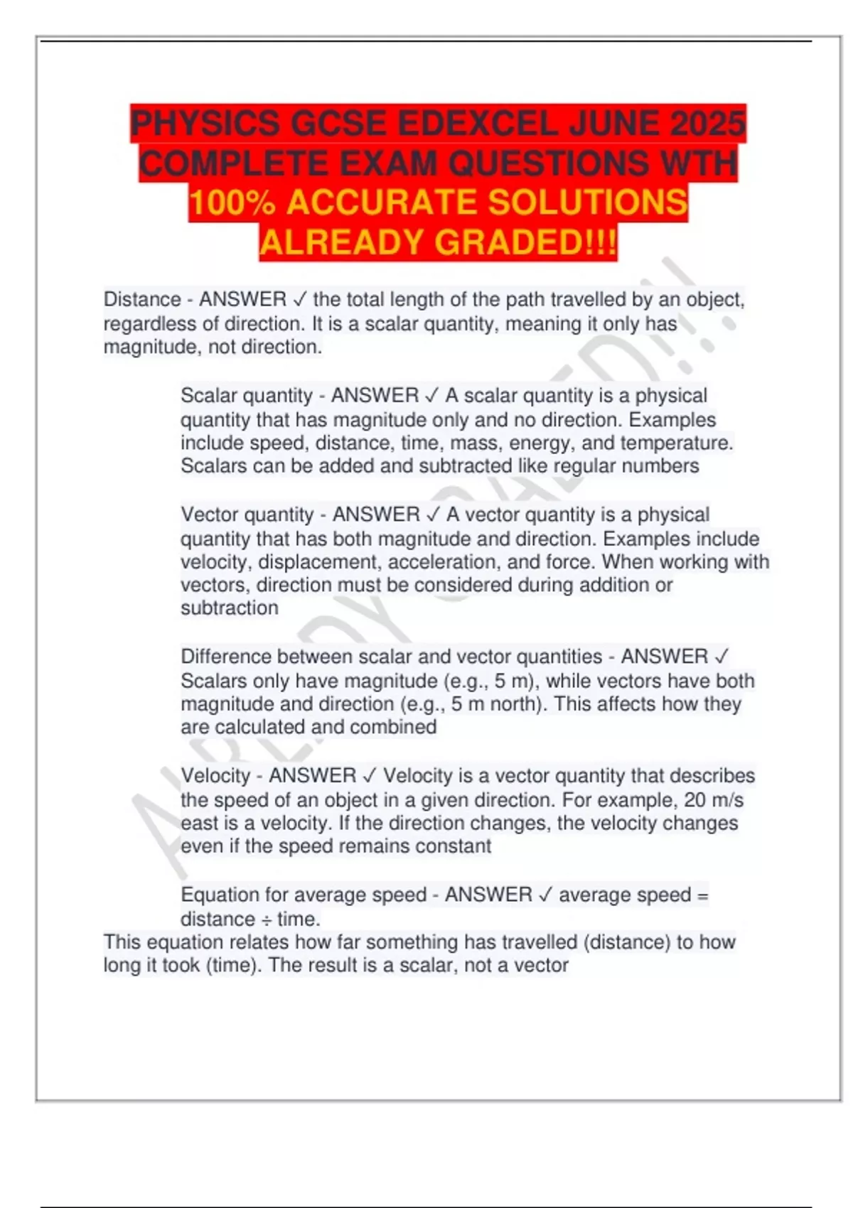 Scalar quantity - ANSWER ✓ A scalar quantity is a physical