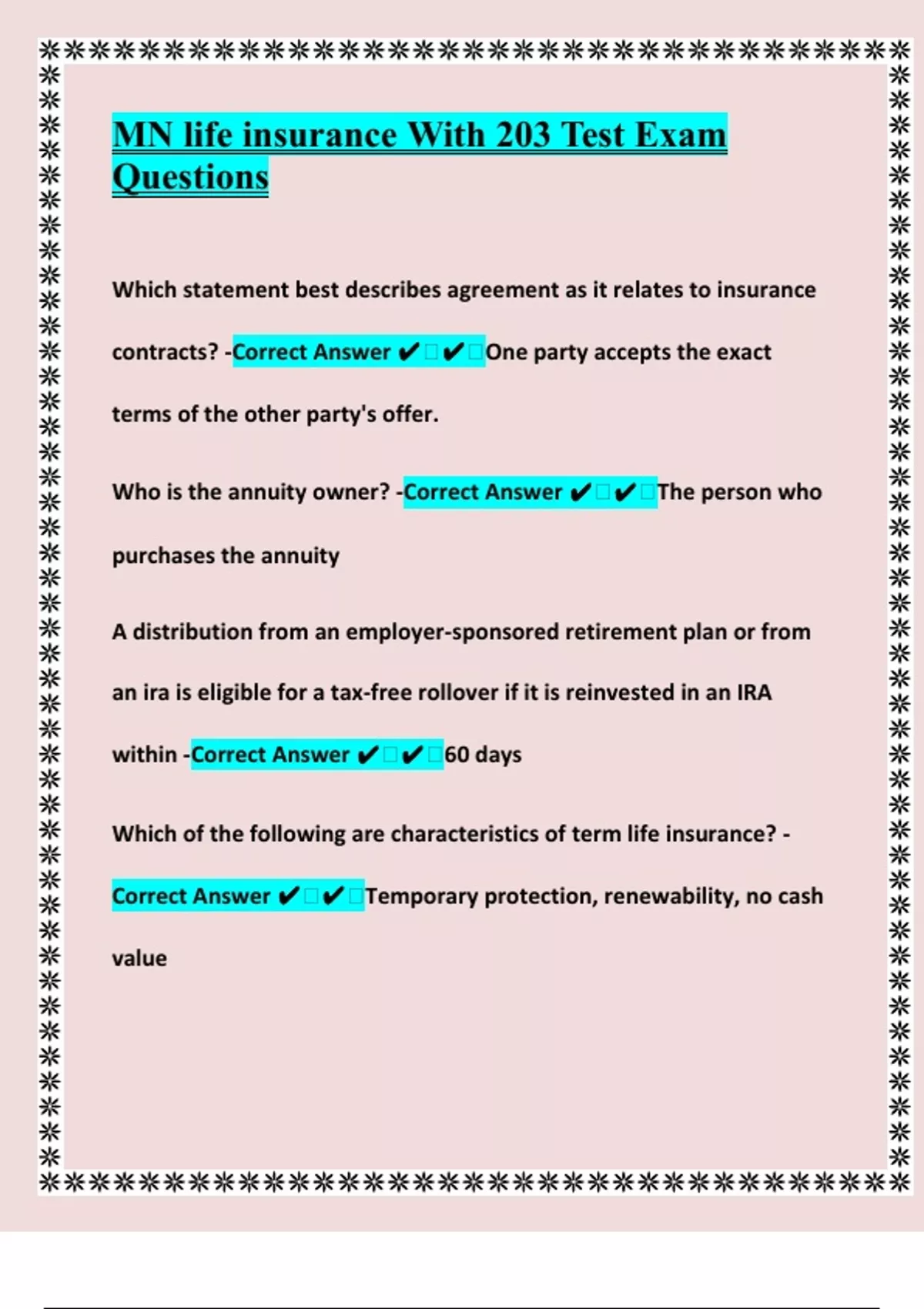 Correct Answer ✔ ✔ Temporary protection, renewability, no cash