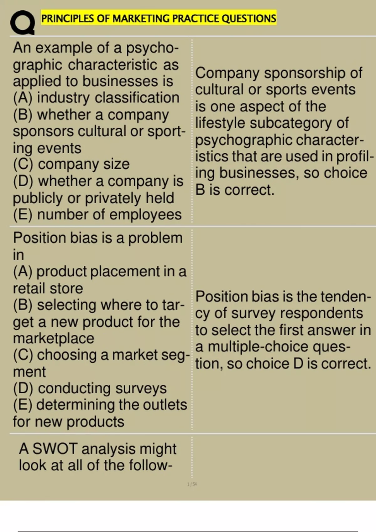, PRINCIPLES OF MARKETING PRACTICE QUESTIONS