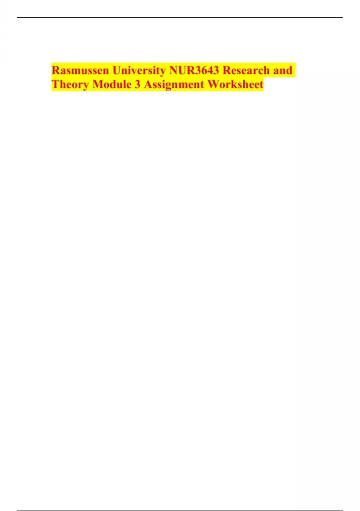 Rasmussen University NUR3643 Research and Theory Module 3 Assignment Worksheet