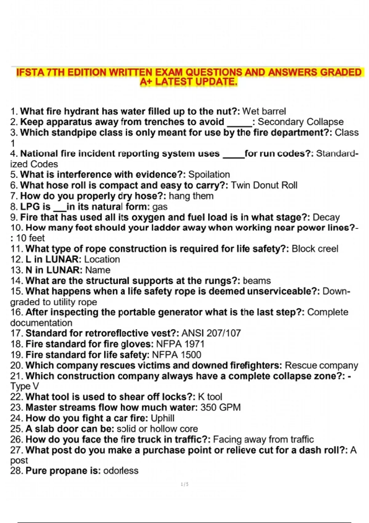 IFSTA 7TH EDITION WRITTEN EXAM QUESTIONS AND ANSWERS GRADED A+ LATEST UPDATE.