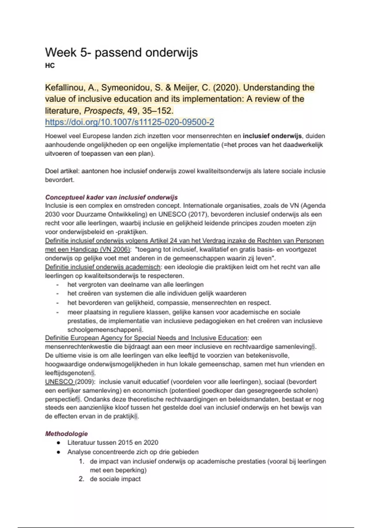 Doel artikel: aantonen hoe inclusief onderwijs zowel kwaliteitsonderwijs als latere sociale inclusie