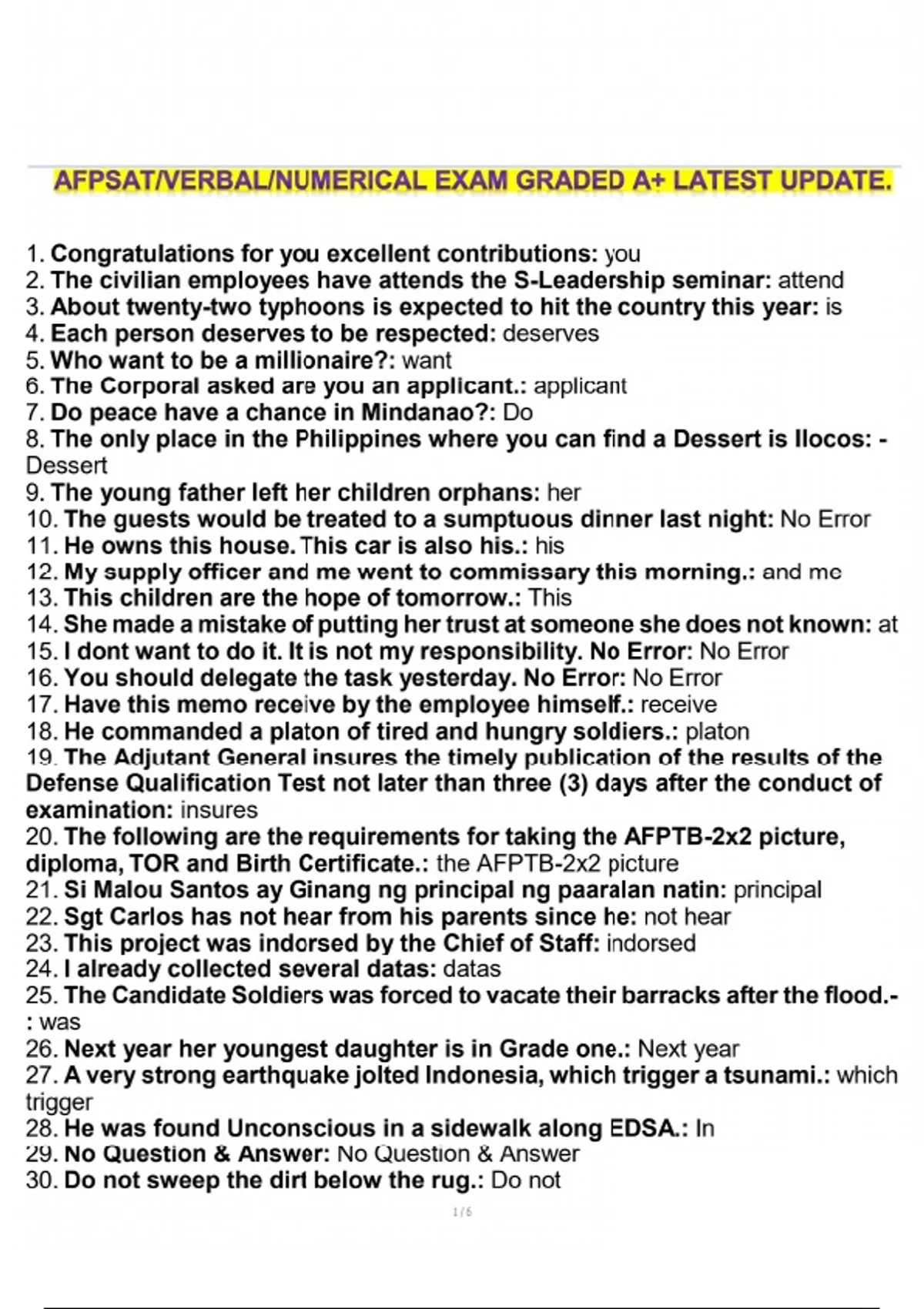 AFPSAT/VERBAL/NUMERICAL EXAM GRADED A+ LATEST UPDATE. AFPSAT exam prep AFPSAT latest updates AFPSAT verbal section tips numerical exam preparation AFPSAT graded A+ strategies AFPSAT study guide AFPSAT test strategies latest AFPSAT exam version verbal exam techniques AFPSAT highest grade resources numerical reasoning practice AFPSAT A+ tips and tricks verbal test preparation numerical exam updates AFPSAT latest review study for AFPSAT exam AFPSAT tips for A+ verbal reasoning AFPSAT AFPSAT score improvement current AFPSAT exam material numerical test success tips AFPSAT exam techniques verbal practice for AFPSAT numerical reasoning AFPSAT AFPSAT exam strategies AFPSAT scoring guide latest AFPSAT test tips AFPSAT preparation resources
