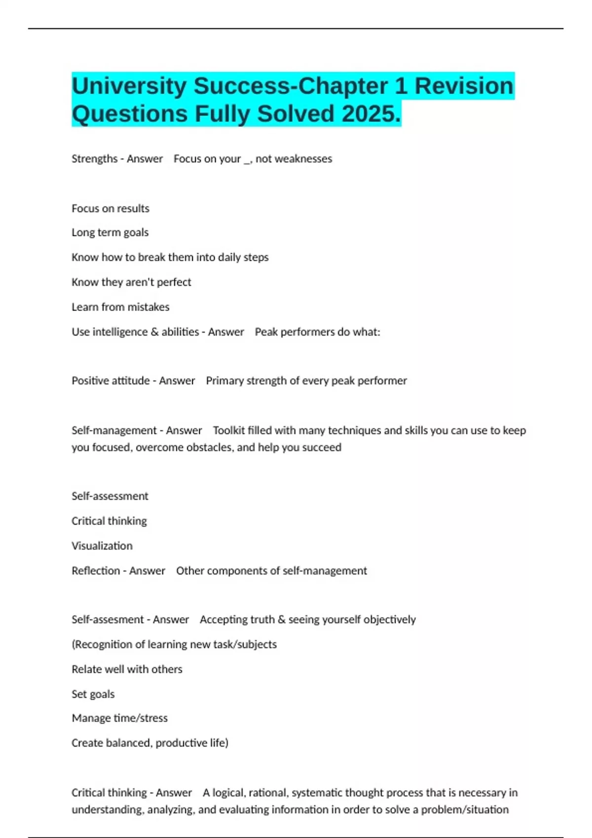 Self-assesment - Answer Accepting truth & seeing yourself objectively