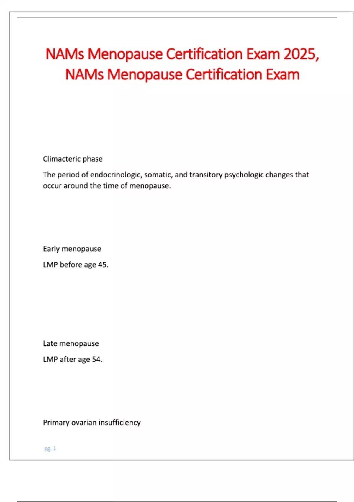 NAMs Menopause Certification Exam 2025, NAMs Menopause Certification Exam Questions & Answer Key with Complete Solution.
