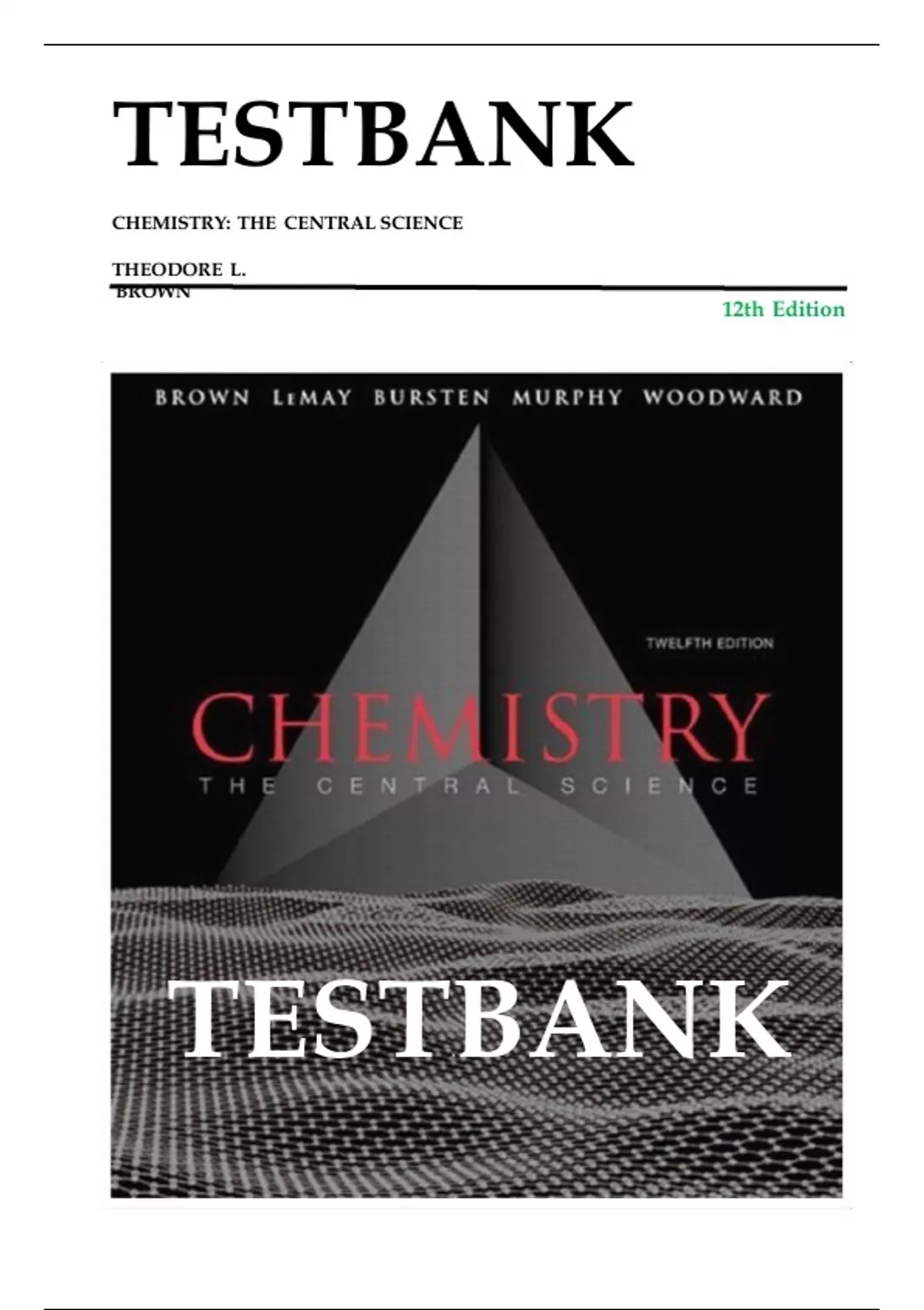 TEST BANK for CHEMISTRY: The Central Science 12th Edition by Brown, LeMay, Bursten Murphy Woodward ISBN 9780321696724 Chapter 1-24 | Complete Guide A+