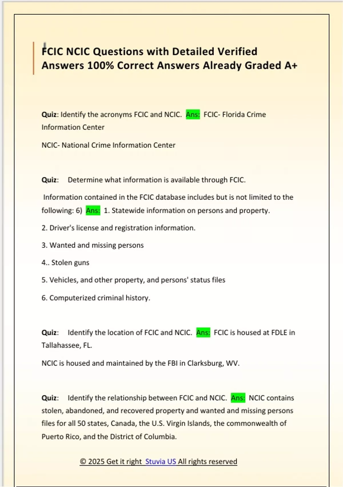 Quiz: Identify the acronyms FCIC and NCIC. Ans: FCIC- Florida Crime
