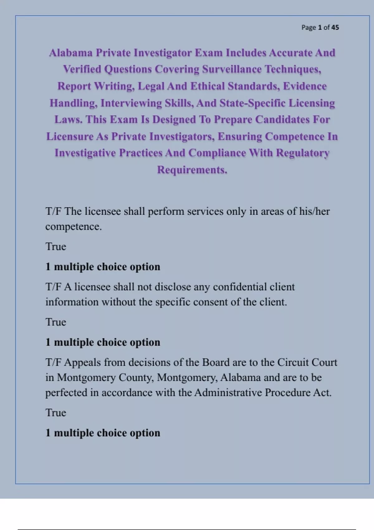 Alabama Private Investigator Exam Includes Accurate And