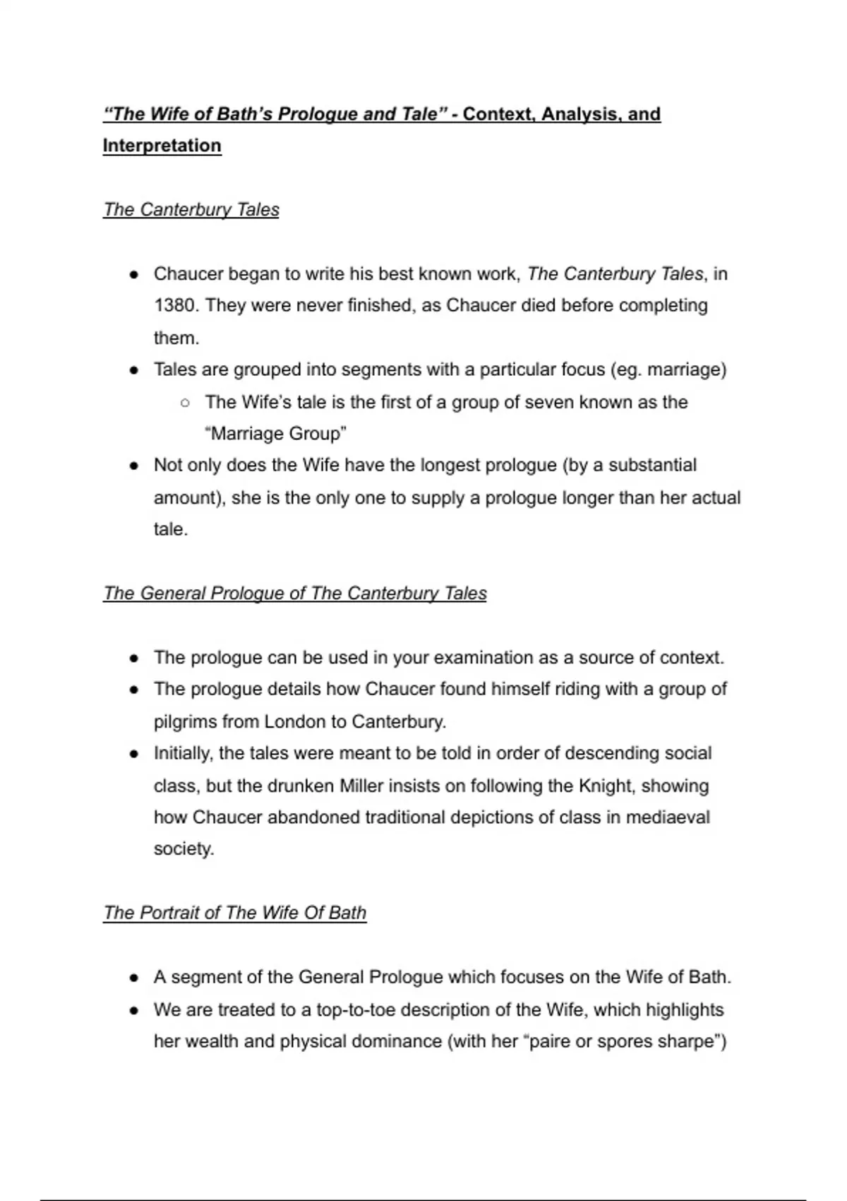 ● A segment of the General Prologue which focuses on the Wife of Bath.