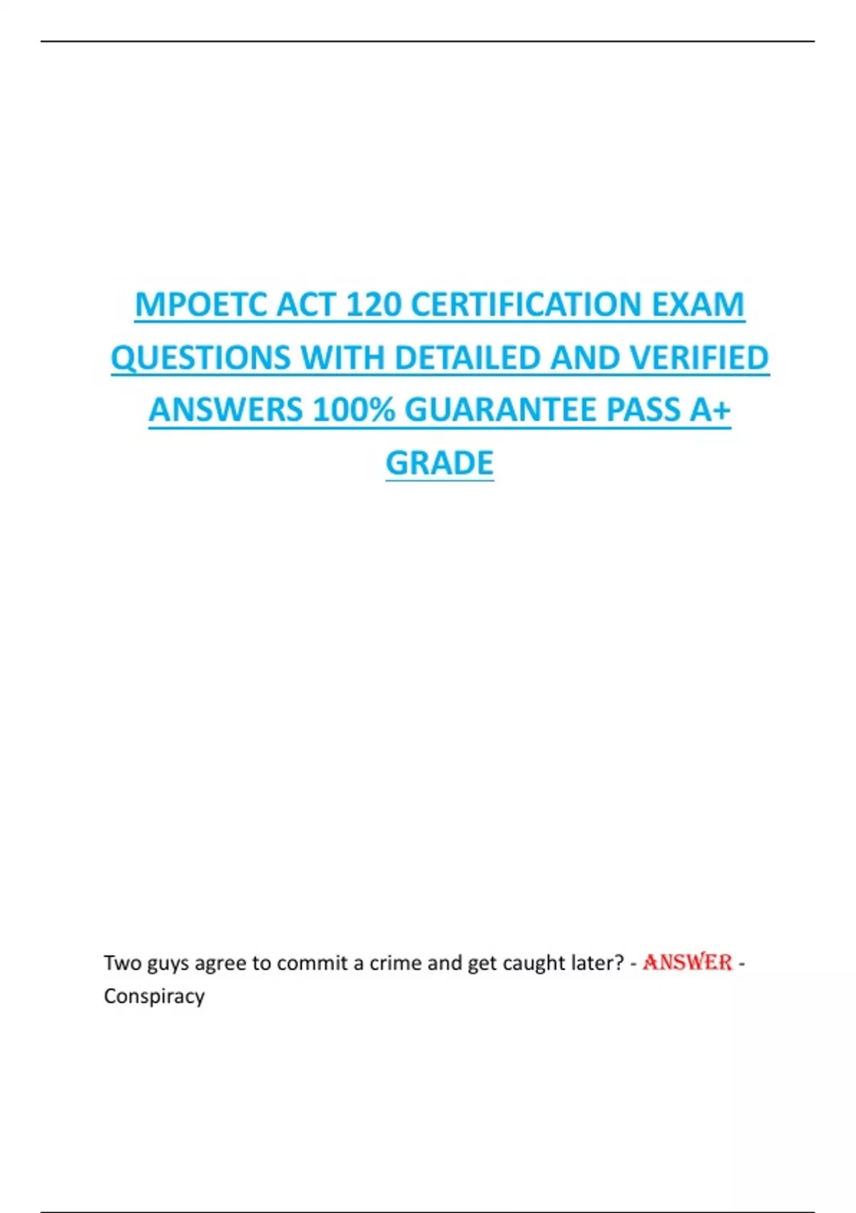 MPOETC ACT 120 CERTIFICATION EXAM QUESTIONS WITH DETAILED AND VERIFIED ANSWERS 100% GUARANTEE PASS A+ GRADE