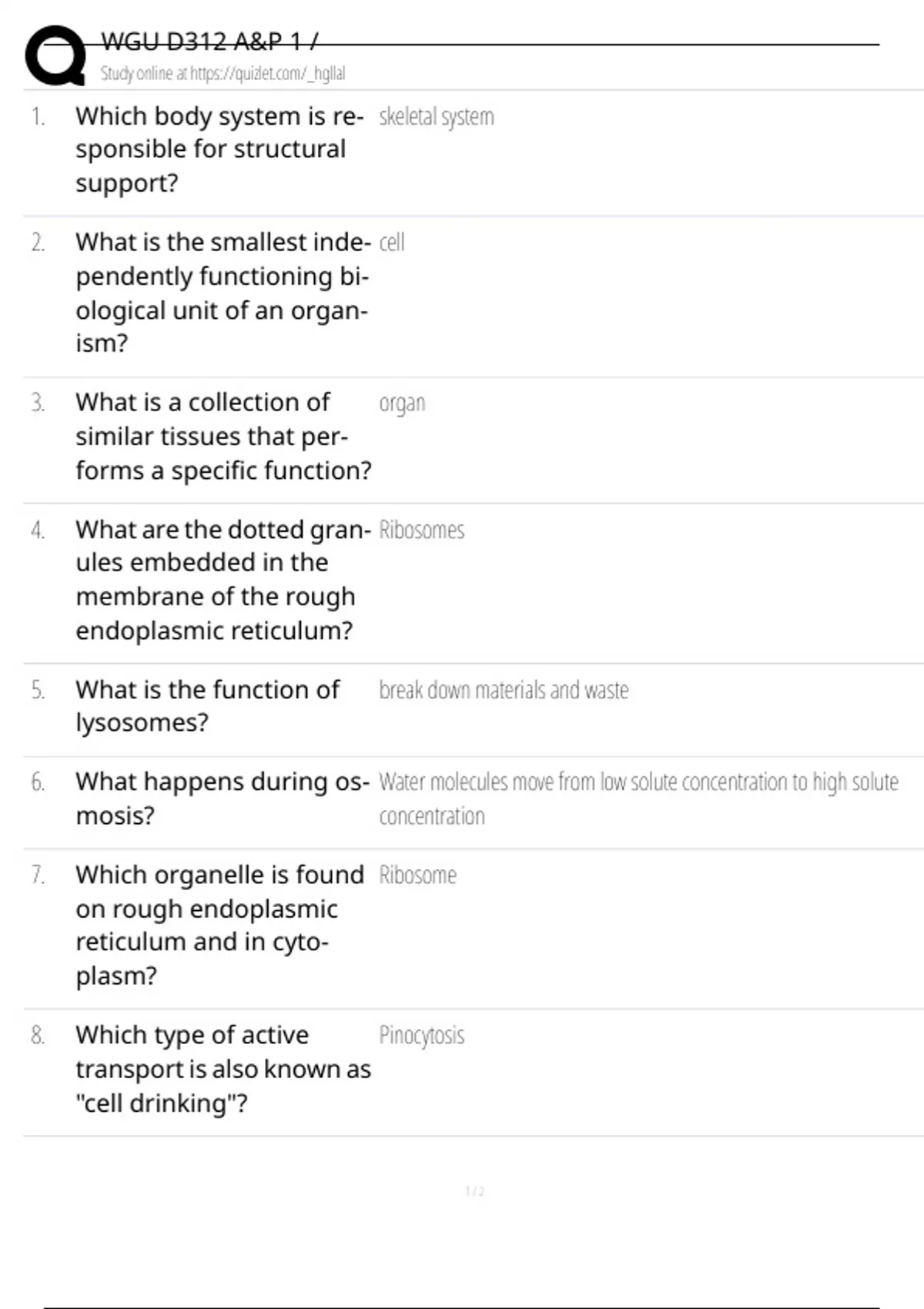 Exam of 2 pages for the course WGU D312 A&P 1 at WGU D312 A&P 1 (WGU D312 A&P 1)