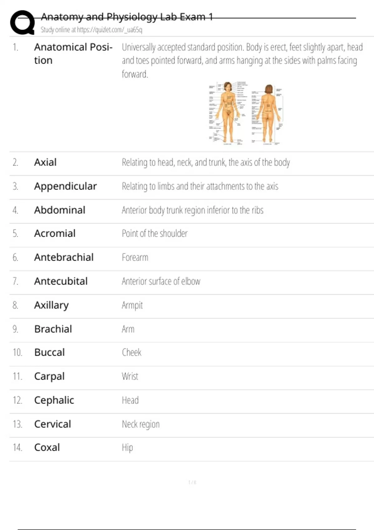 Anatomy and Physiology Lab Exam 1