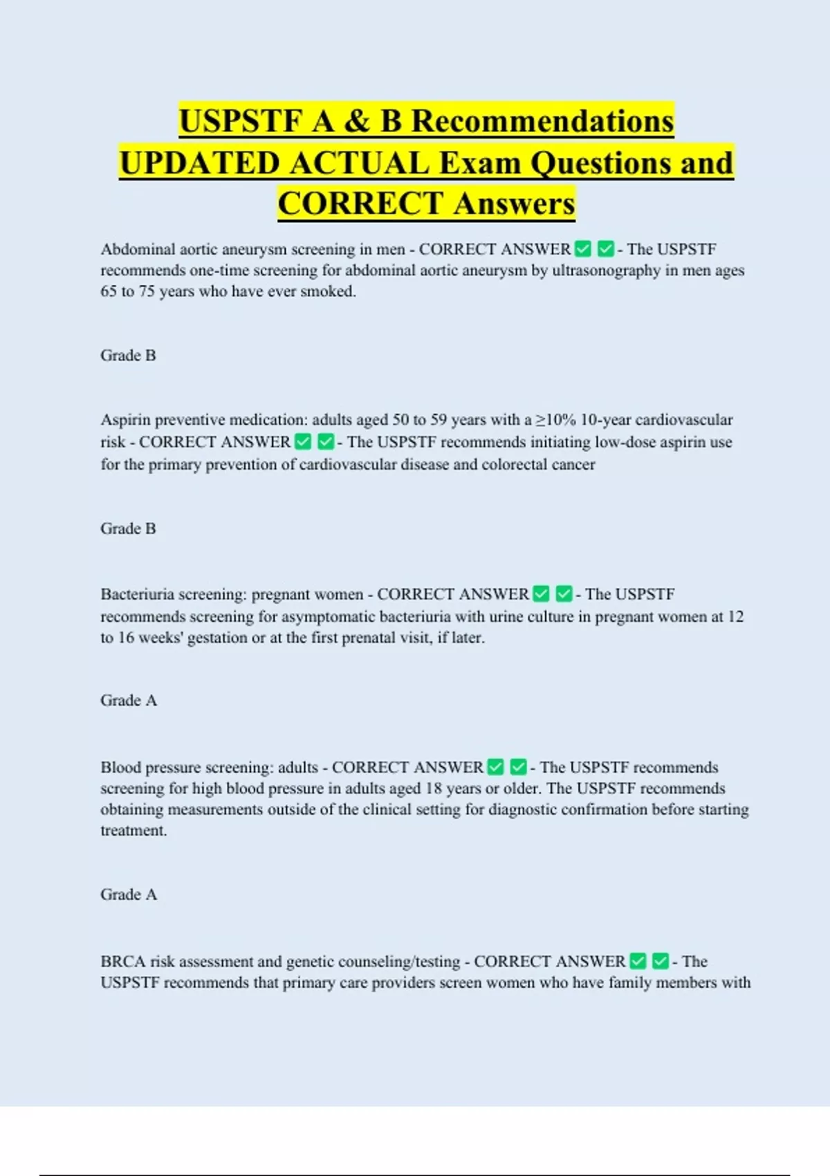 Abdominal aortic aneurysm screening in men - CORRECT ANSWER - The USPSTF