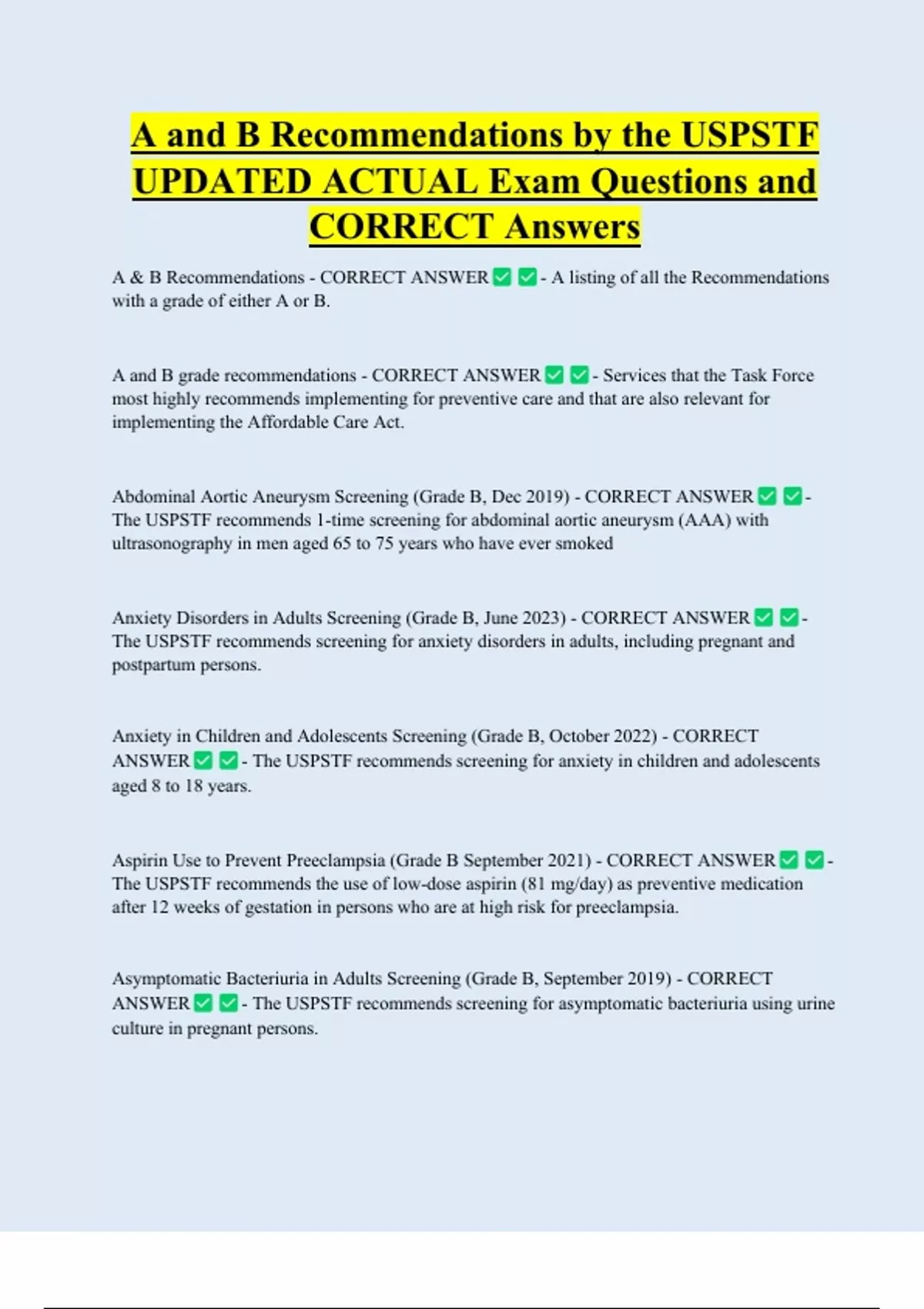 A and B grade recommendations - CORRECT ANSWER - Services that the Task Force
