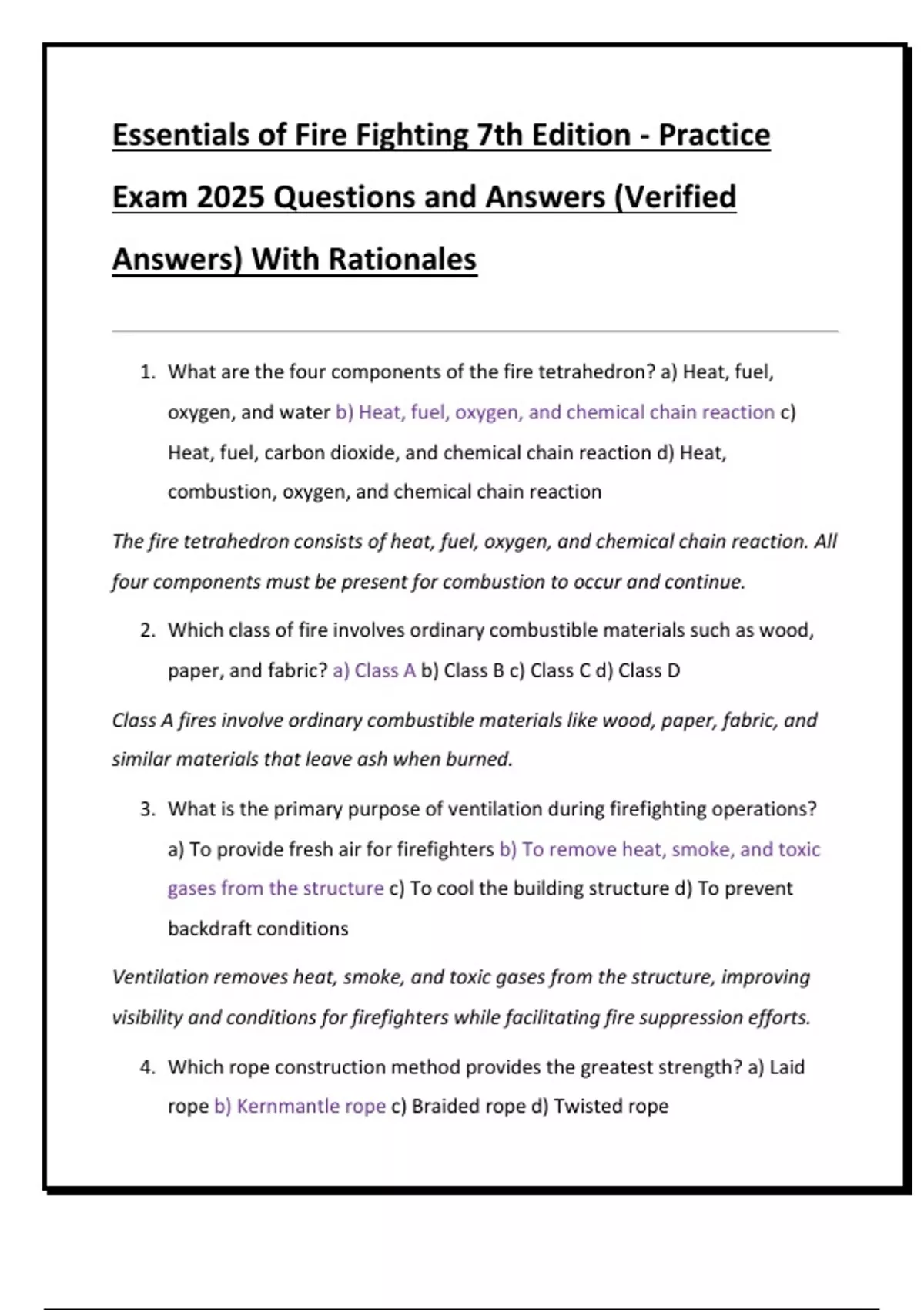 Essentials of Fire Fighting 7th Edition - Practice Exam 2025 Questions and Answers (Verified Answers) With Rationales