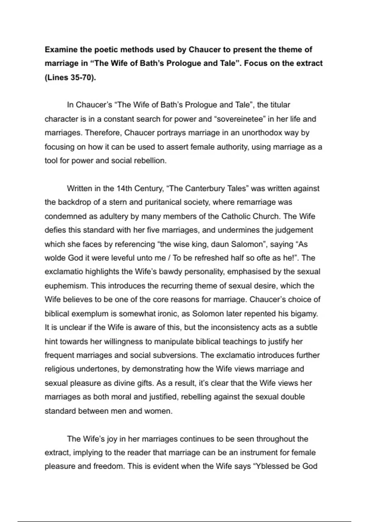 In this way, the Wife’s discussion of marriage can be seen as a rebellion