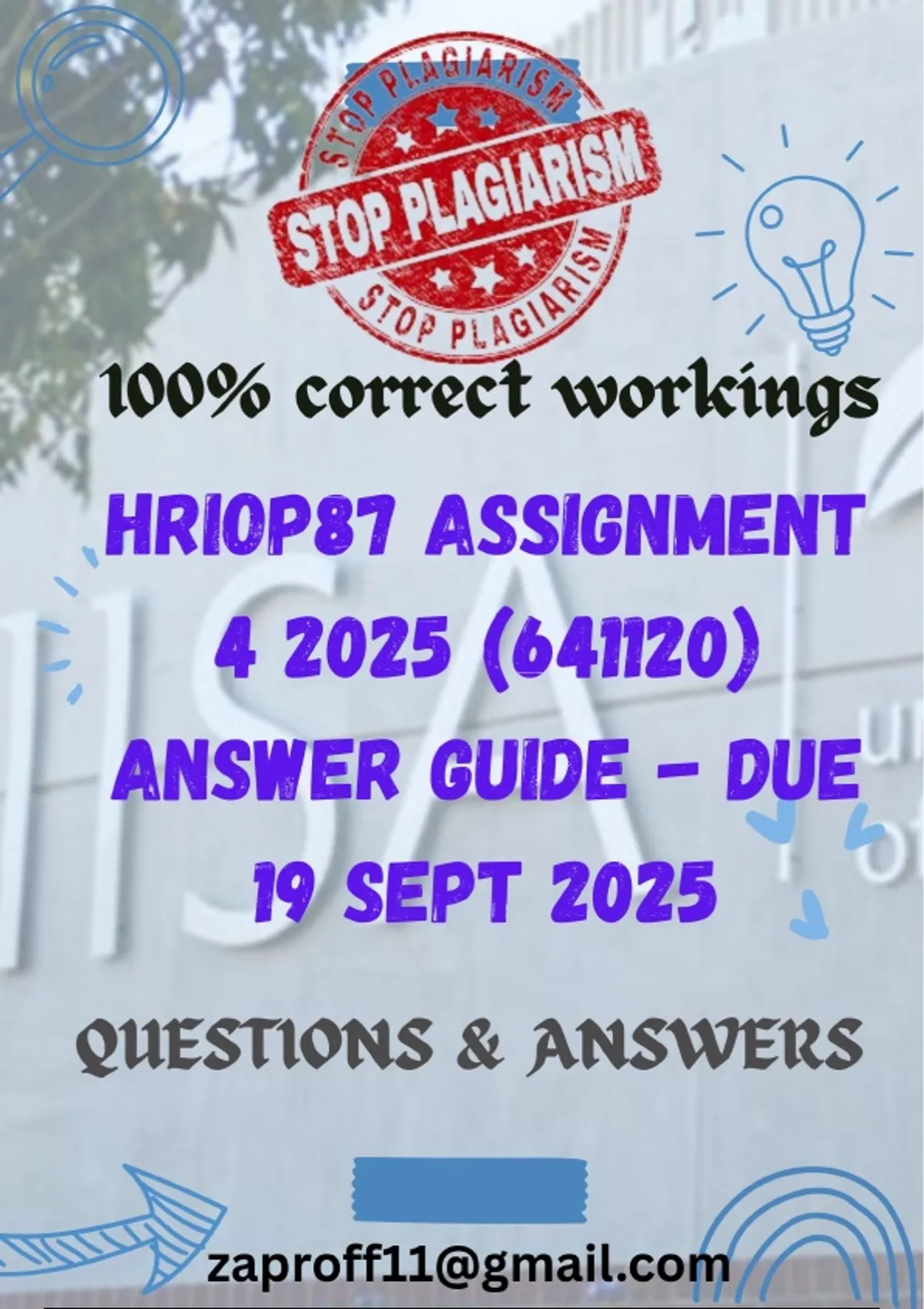 HRIOP87 Assignment 4 2025 (641120) Answer Guide - DUE 19 SEPT 2025