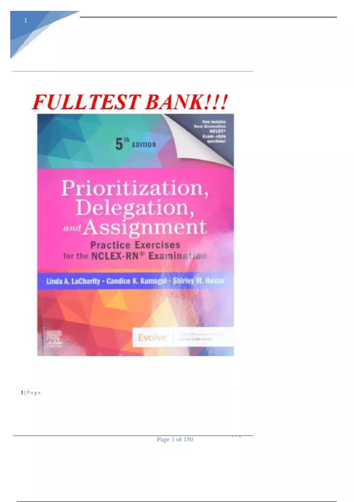 Test Bank For Prioritization, Delegation, and Assignment, 5th Edition, Practice Exercises for the NCLEX Examination Author:LA Charity All Chapters[1-22]With Verified Questions And Answers 100% Complete A+ Guide Latest Version 2025