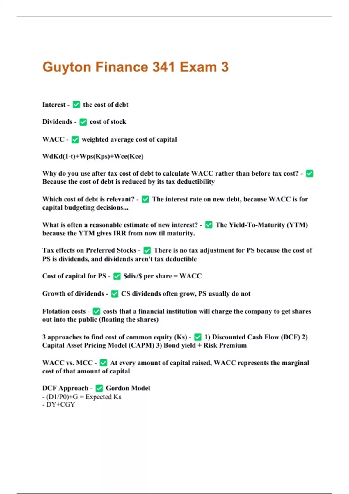 Guyton Finance 341 Exam 3 All Possible Questions and Answers with complete solution