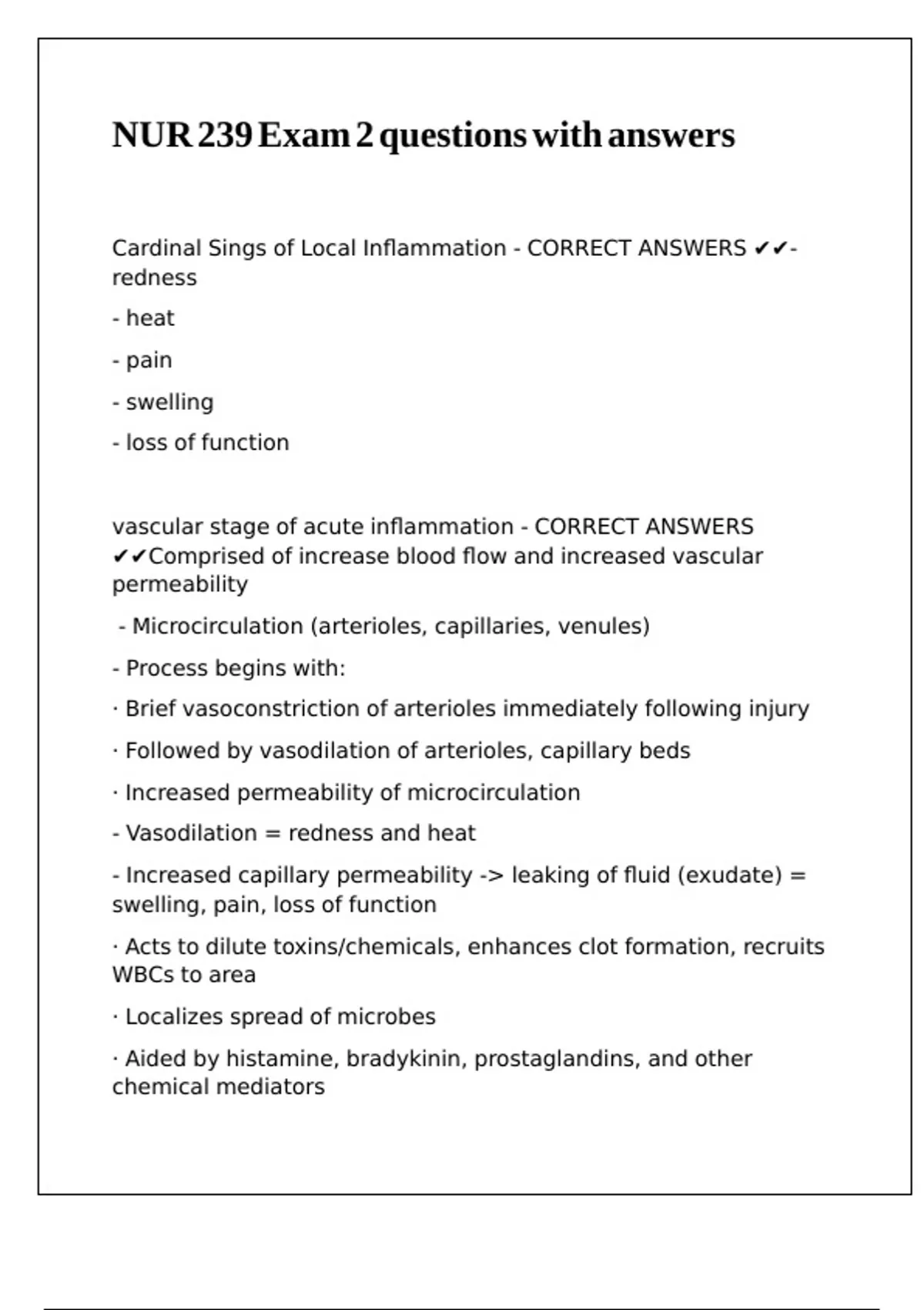 Cardinal Sings of Local Inflammation - CORRECT ANSWERS ✔✔-