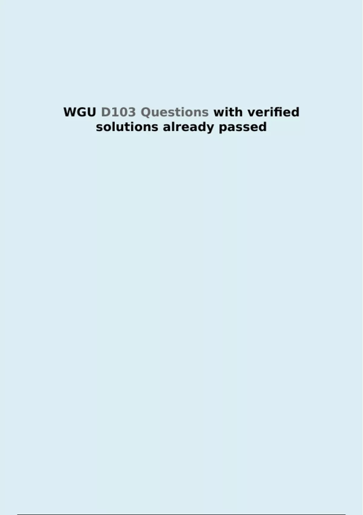WGU D103 Questions with verified solutions already passed