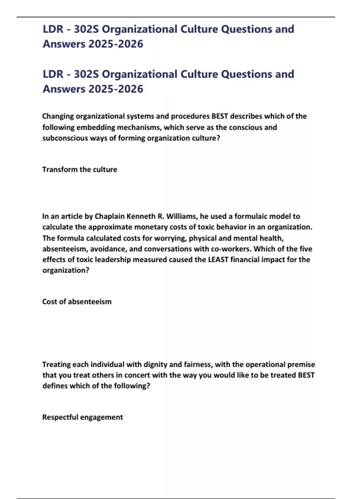 ,LDR - 302S Organizational Culture Questions and