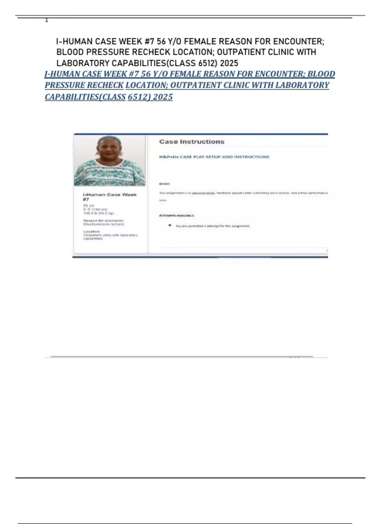 I-HUMAN CASE WEEK #7 56 Y/O FEMALE REASON FOR ENCOUNTER;